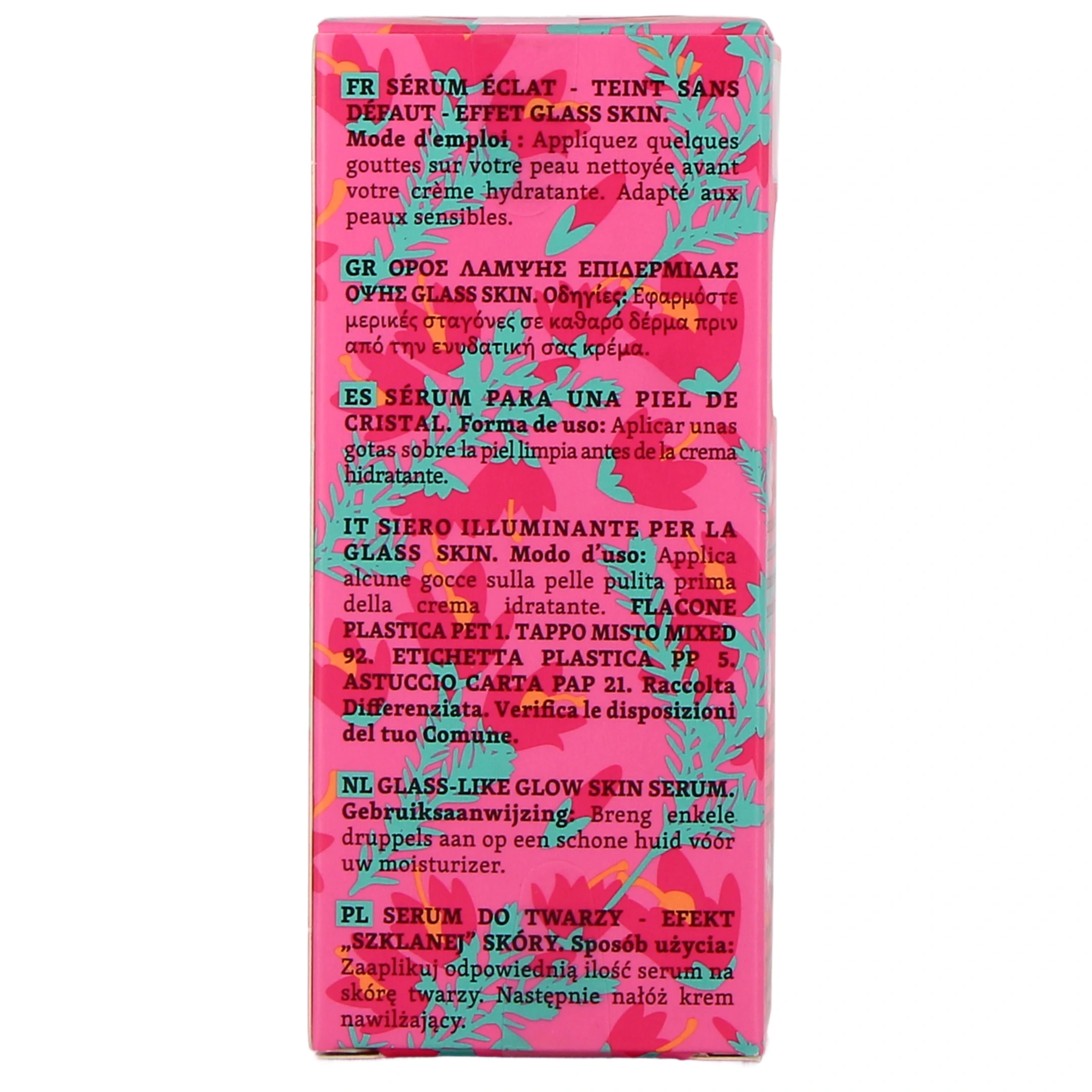 Conçu pour convenir à toutes les peaux, même sensibles, le sérum Natura Siberica glass skin offre un éclat effet miroir instantané et un effet repulpant longue durée. Sa texture soyeuse et légère se répartit facilement sur la peau, pénètre rapidement et ne laisse aucune sensation collante. Il offre un fini frais, parfait et naturellement lumineux. Le parfum fruité de framboise de ce soin Natura Siberica C-Berrica sublime l'application tandis que son flacon girly doté d'une pipette en forme de cœur embellit la salle de bain.