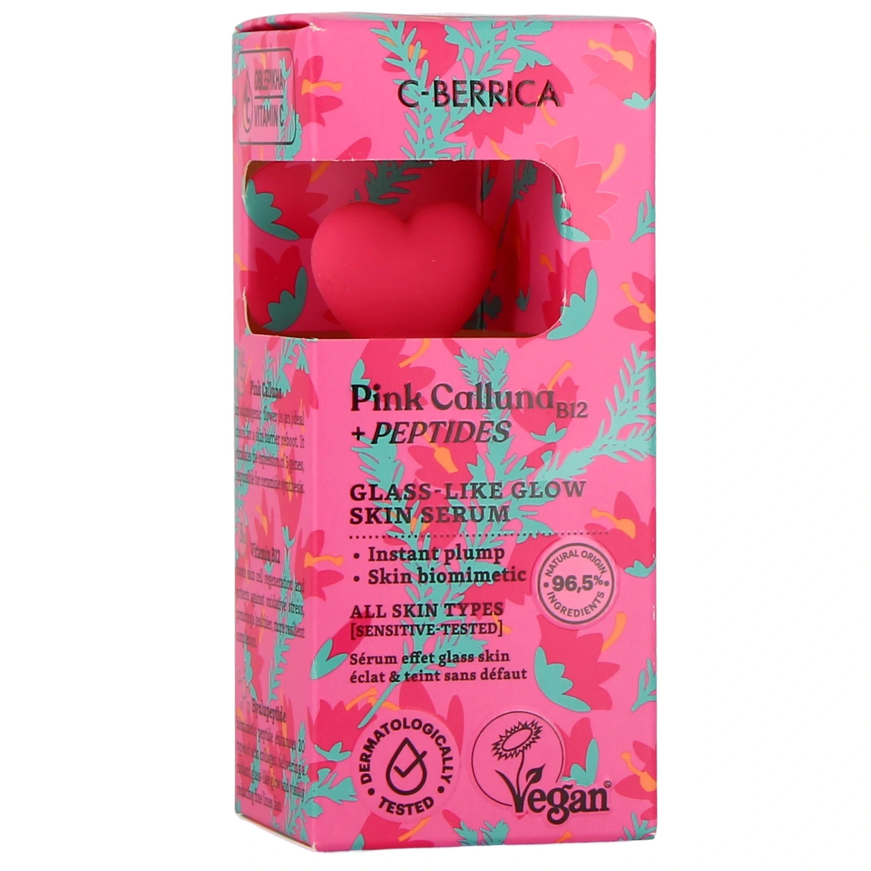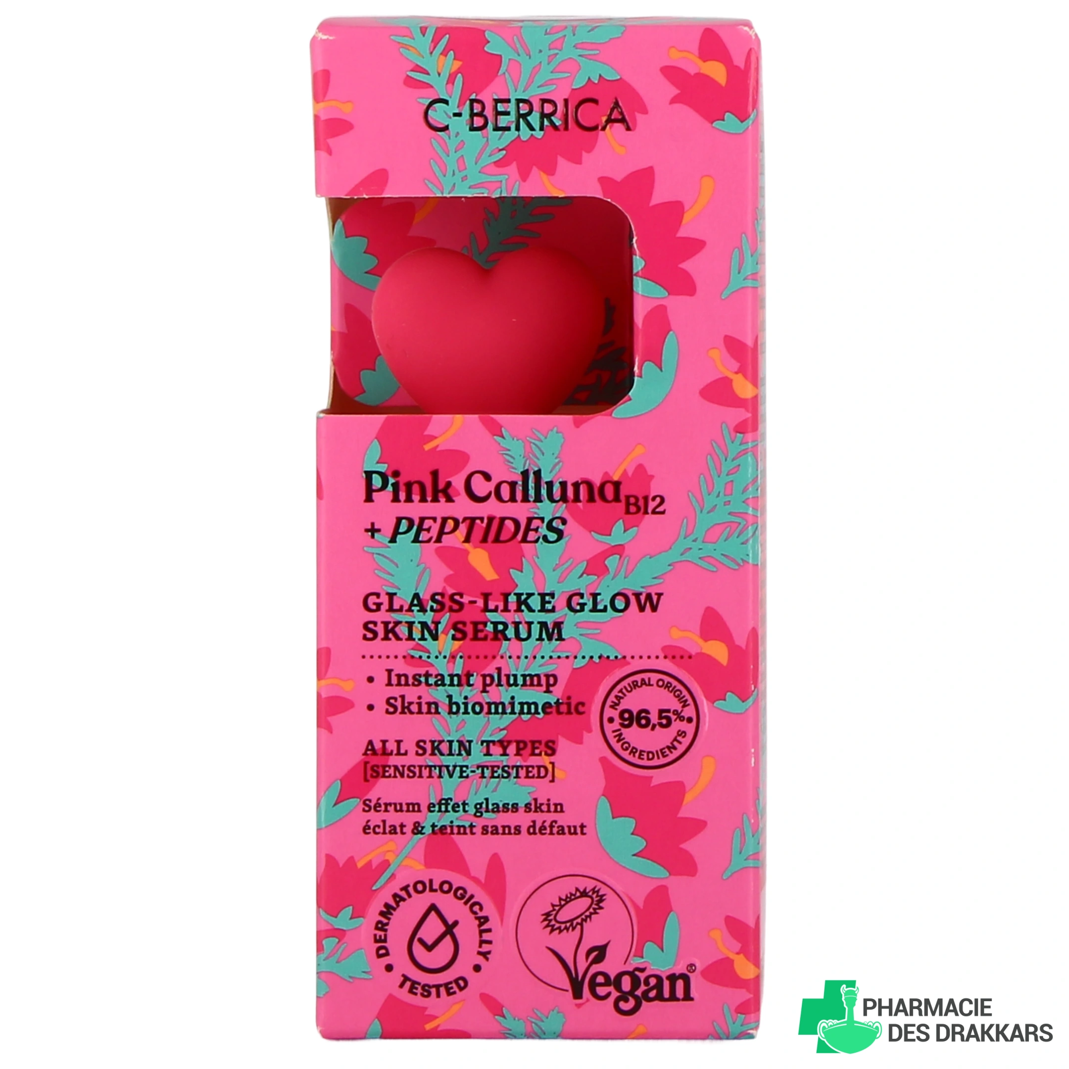 Grâce à sa technologie issue de la science de la modélisation moléculaire, ce sérum C-Berrica agit au cœur de la peau pour en prendre le plus grand soin, l'hydrater intensément et renforcer la barrière cutanée. Sa formule repose principalement sur la bruyère rose ou pink calluna, une fleur adaptogène qui stimule l'expression de cinq gènes responsables de la synthèse des céramides, essentiels à une peau plus résistante et régénérée. La vitamine B12 soutient la régénération cellulaire et aide à protéger du stress oxydatif pour favoriser un teint plus sain. Enfin, le hyalupeptide, peptide biomimétique innovant contenu dans ce sérum glass skin Natura Siberica, contribue à renforcer 20 types de collagène et favorise une peau plus ferme, lisse et éclatante.