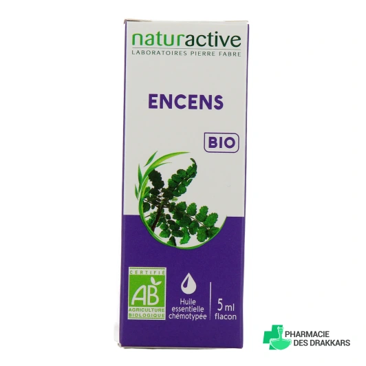 Conditionnement proposé par la pharmacie en ligne des Drakkars pour l'huile essentielle encens bio Naturactive : flacon de 5 ml.