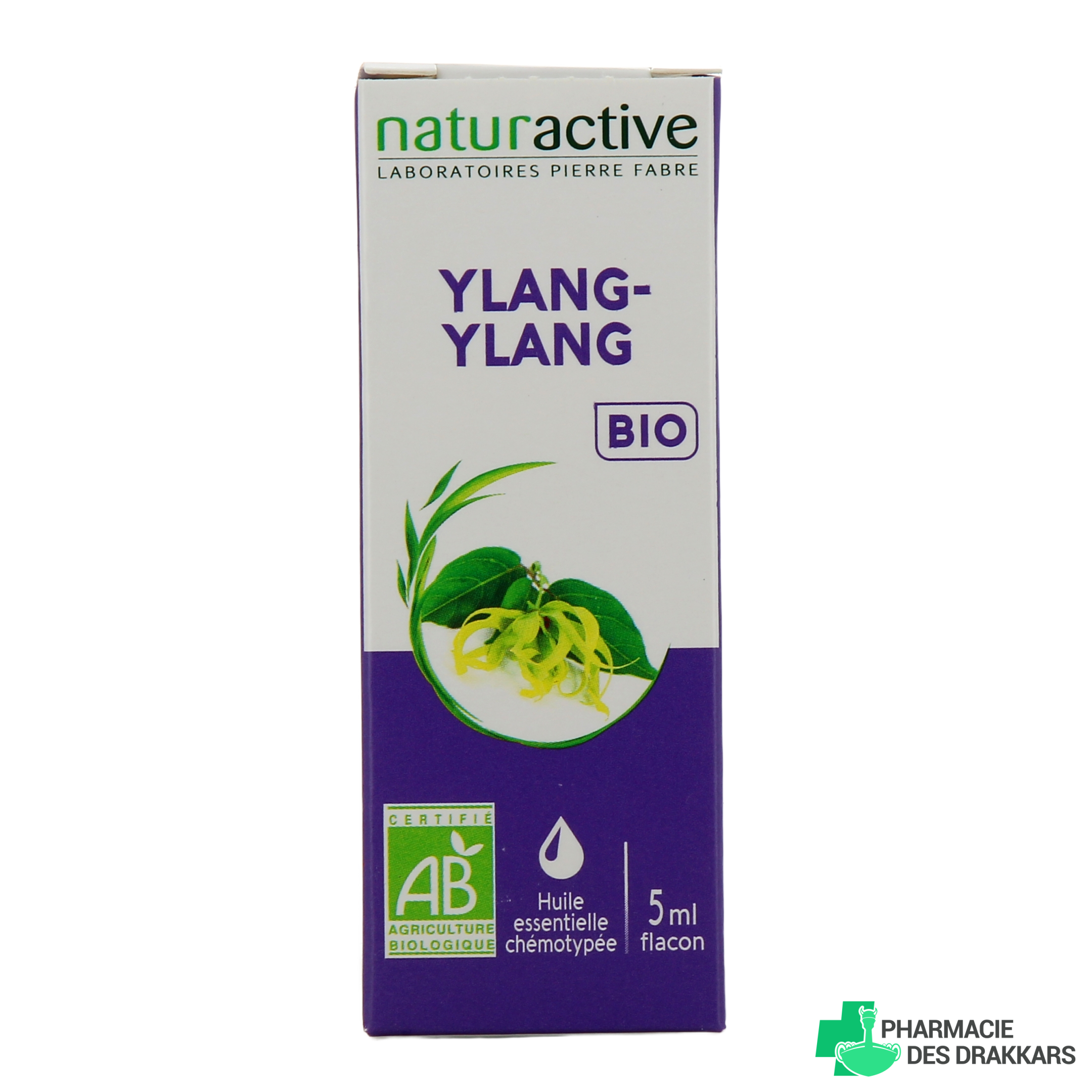 L'huile essentielle d'ylang-ylang Naturactive est obtenue à partir d'un processus de distillation par entraînement à la vapeur d'eau de la fleur fraîche originaire de Madagascar. Fortement concentrée en sesquiterpènes et en alcools, ainsi qu'en acétate de géranyle, cette huile essentielle Naturactive posséderait plusieurs propriétés, notamment relaxantes, antalgiques et aphrodisiaques. Son utilisation est possible par voie orale, en diffusion (diluée dans d'autres huiles essentielles), en inhalation et en voie cutanée (diluée dans une huile végétale).