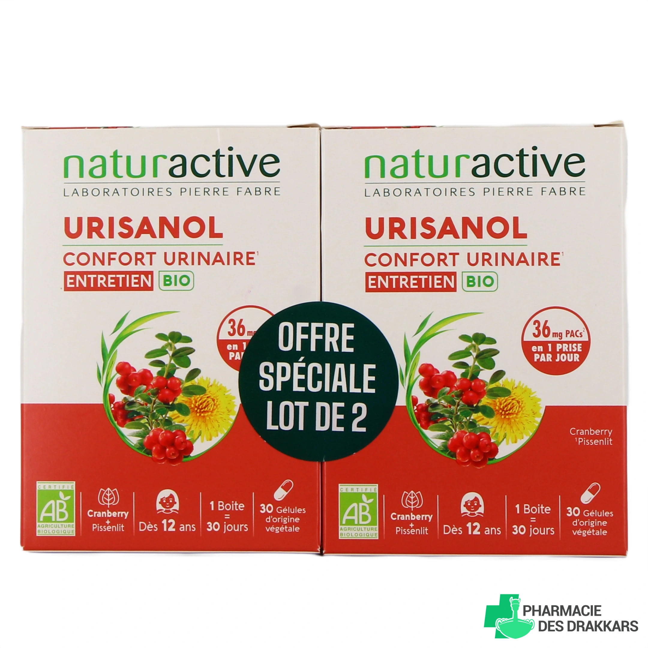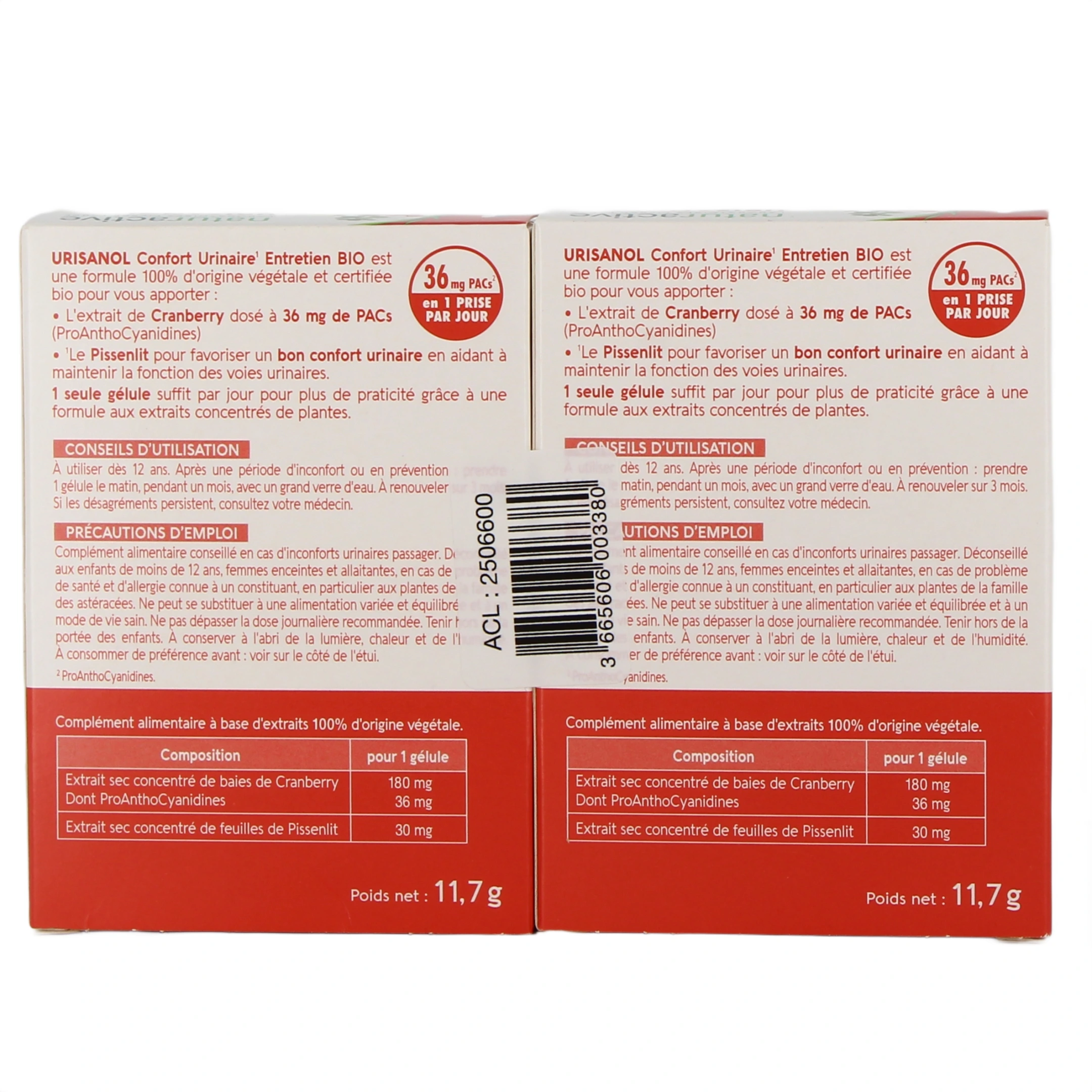 Urisanol Gélules est un complément alimentaire à base d'extrait de cranberry d'Amérique du Nord et de pissenlit. Chaque gélule est dosée à 36 mg de proanthocyanidines (PACs).
