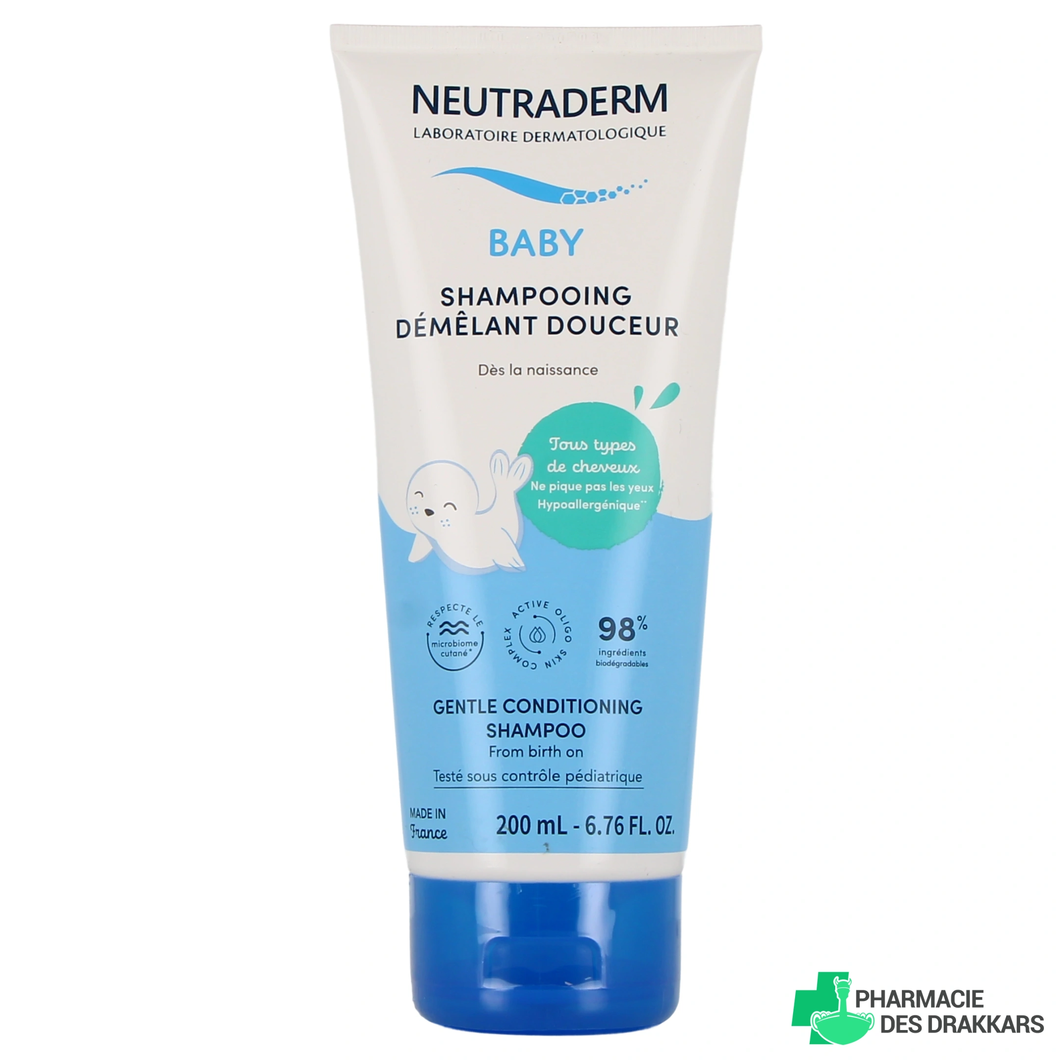 Conditionnement disponible sur notre pharmacie en ligne pour le shampooing démêlant douceur Neutraderm Baby : tube de 200 ml.