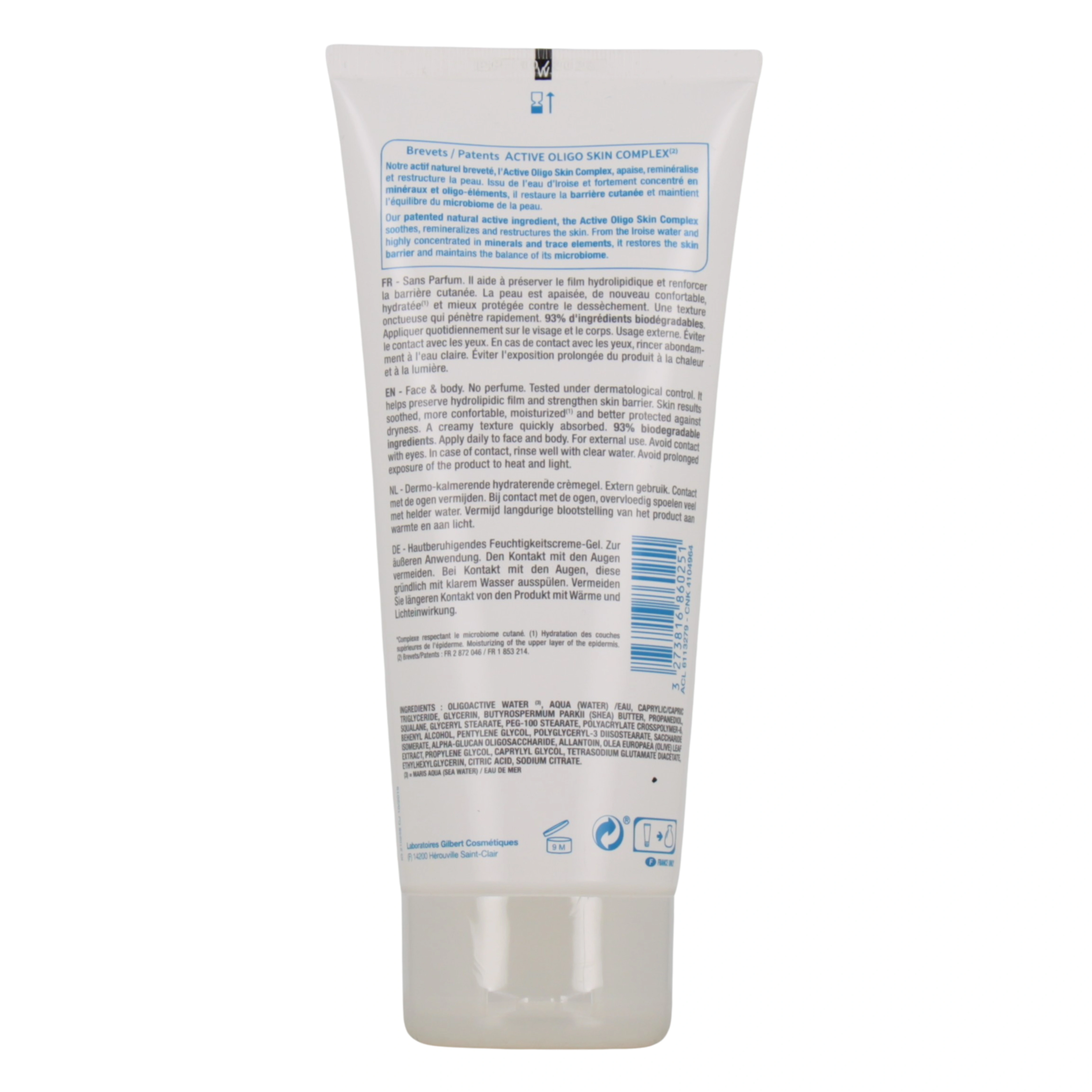 Formulé sans parfum et composé à 95% d'ingrédients d'origine naturelle, le gel-crème hydratant et apaisant est conçu pour le visage et le corps de toute la famille. Il hydrate, nourrit et calme les sensations d'inconfort tout en renforçant la barrière cutanée grâce à l'active oligo skin complex.
