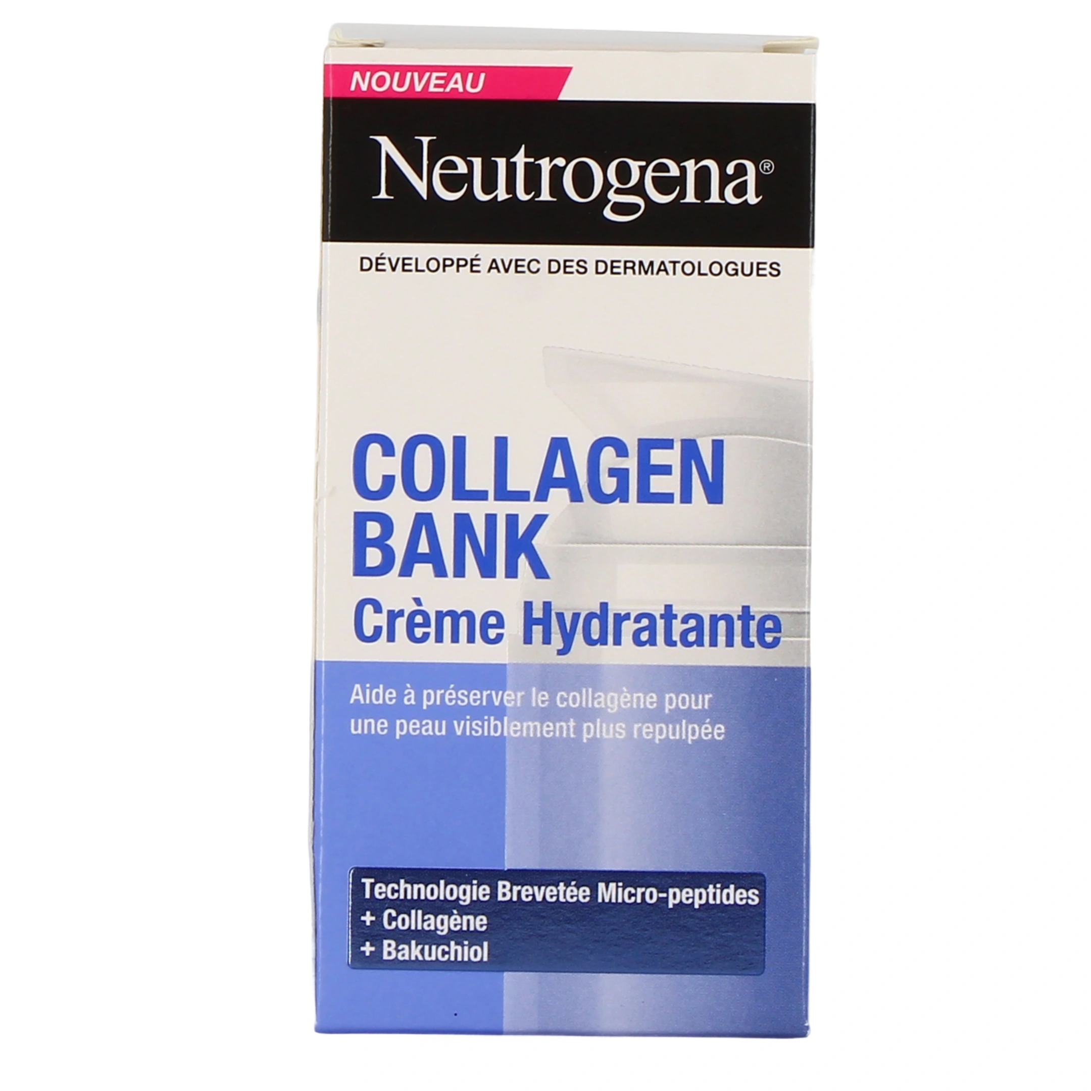 La crème hydratante Collagen Bank Neutrogena est un soin pour le visage à l'efficacité cliniquement prouvé qui améliore la fermeté, l'élasticité et le soin. Ce soin anti-âge à l'action préventive repose sur la technologie brevetée de micro-peptides Neutrogena, deux fois plus efficace pour préserver le collagène.