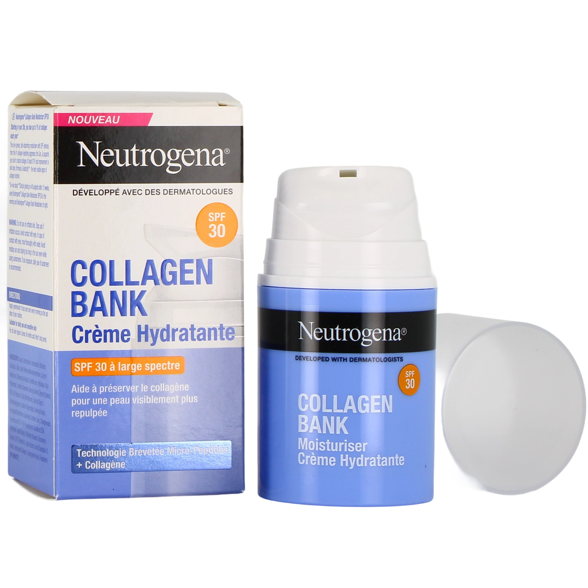Présentations disponibles sur notre pharmacie en ligne pour Neutrogena Collagen Bank Crème Hydratante : flacon-pompe de 50 ml ou flacon-pompe de 50 ml avec SPF 30.