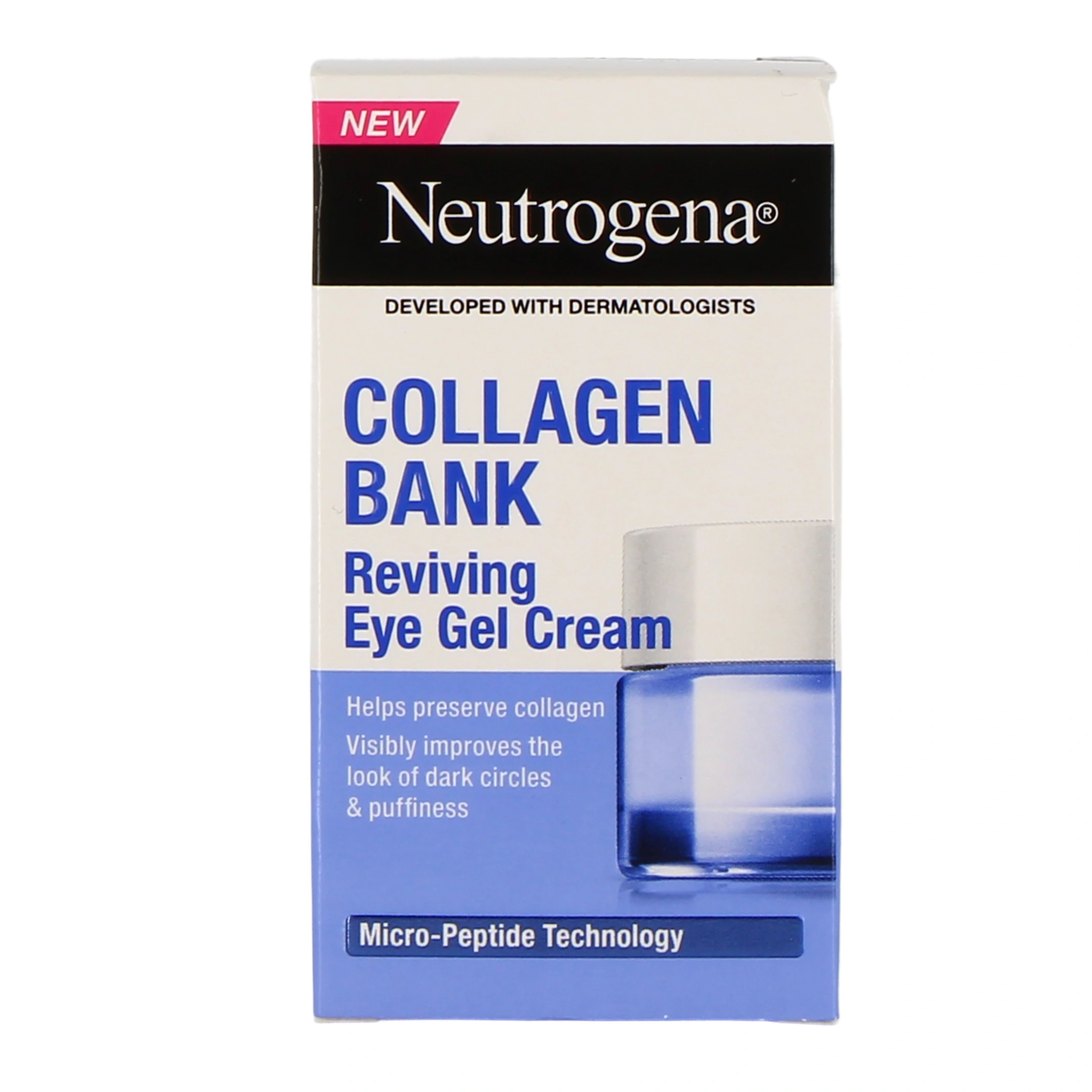 Le gel-crème yeux revitalisant est un soin contour des yeux Neutrogena Collagen Bank qui améliore visiblement l'apparence des 5 premiers signes du vieillissement : cernes, poches, ridules, élasticité et texture tout en préservant le collagène et en prévenant sa dégradation. Il revitalise le regard en estompant les cernes avec efficacité et raffermit la peau.