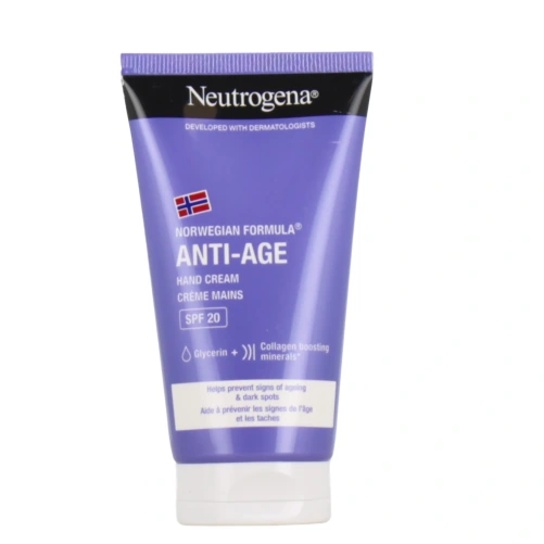 La crème mains anti-âge SPF 20 Neutrogena est un soin quotidien pour les mains qui hydrate intensément la peau et qui aide à prévenir les signes de l'âge ainsi que les taches grâce à son indice de protection solaire.