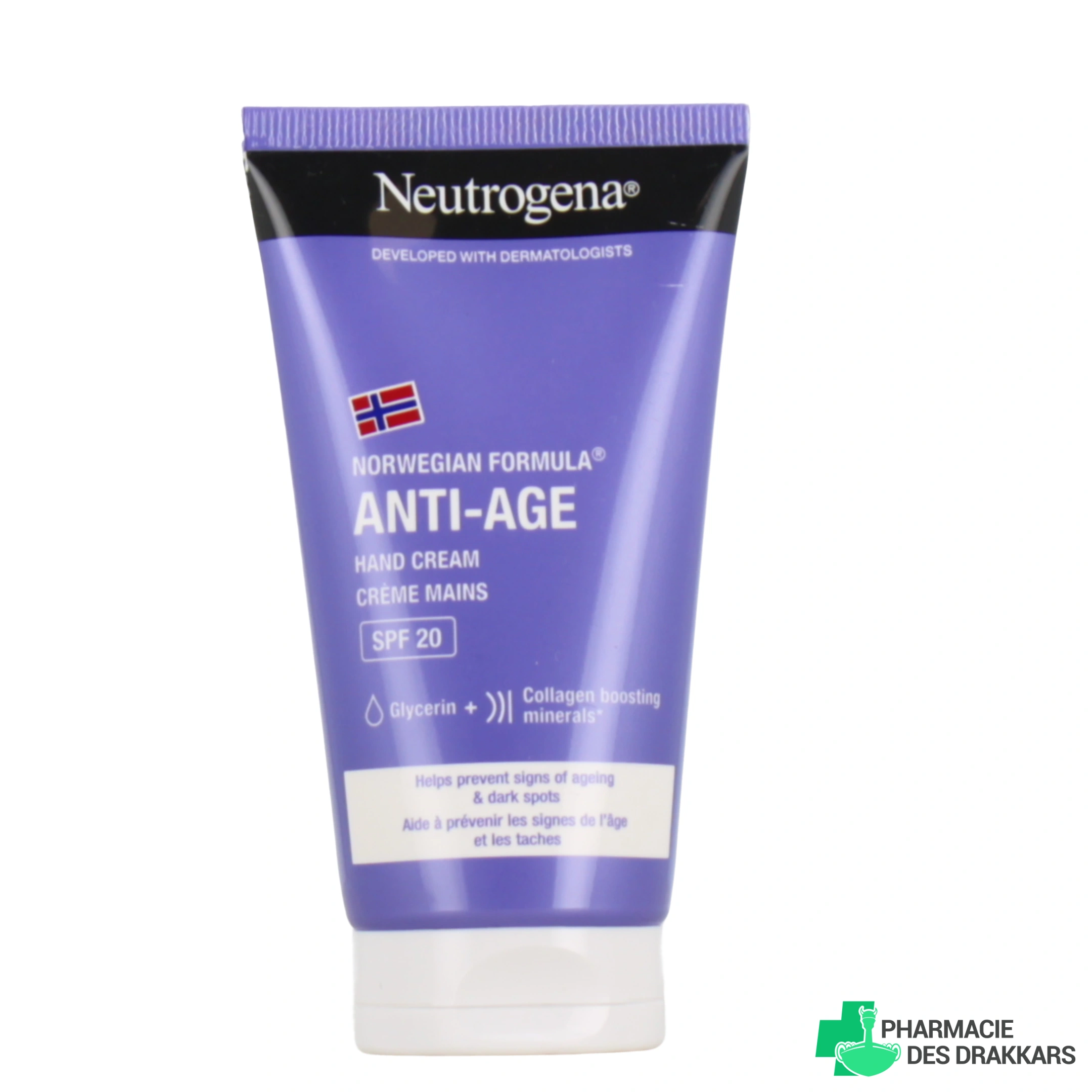 Présentation disponible sur notre pharmacie en ligne pour Neutrogena Crème Mains Anti-Age SPF 20 : tube de 75 ml.