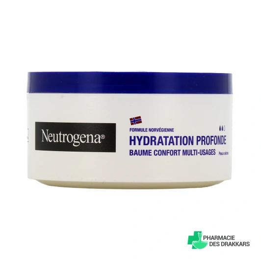 Vous pourrez retrouver le baume confort Multi-usages Hydratation Profonde de Neutrogena dans les présentations suivantes chez Pharmacie des Drakkars : pot de 300 ml de baume.