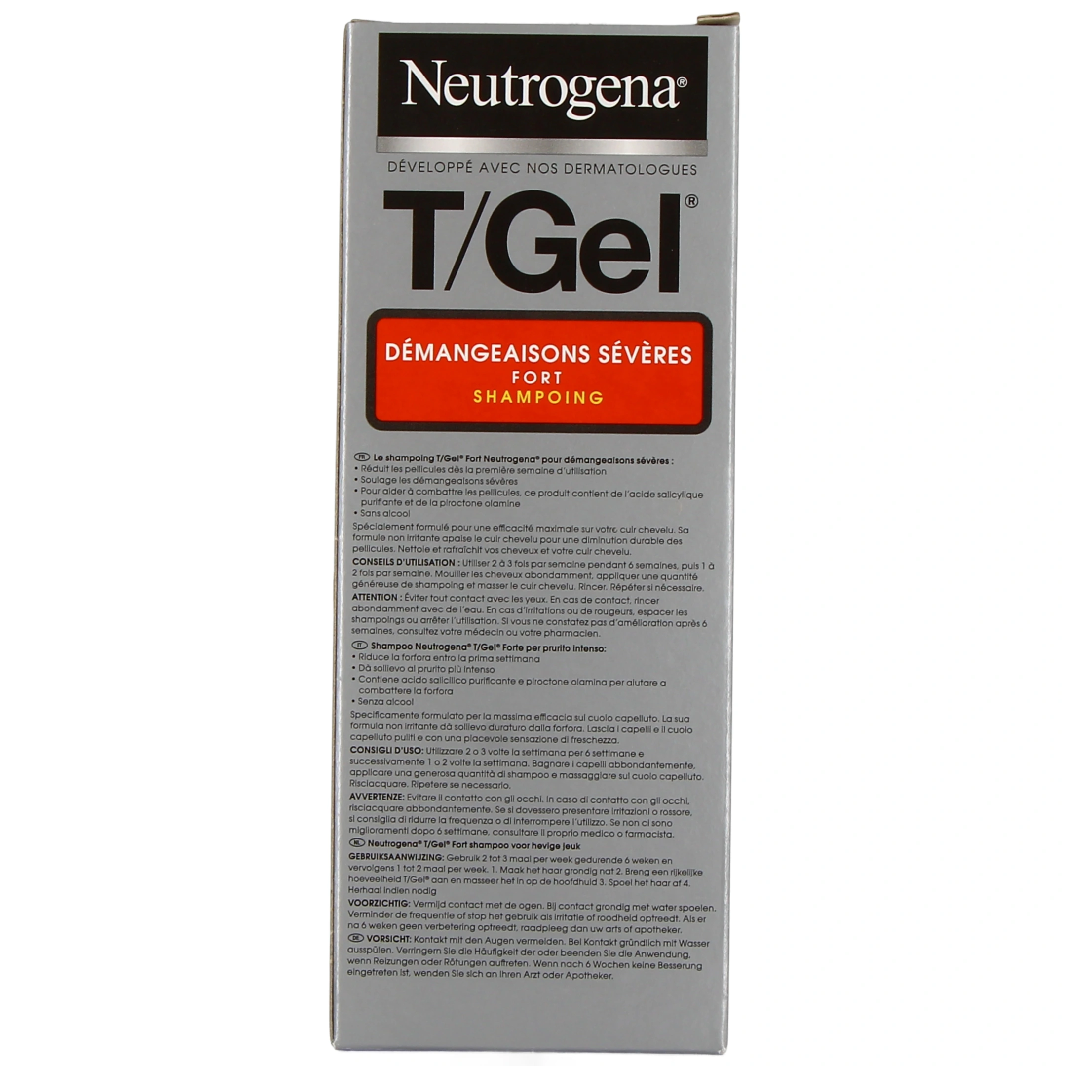 Neutrogena T Gel Fort est recommandé en cas de démangeaisons intenses et de psoriasis du cuir chevelu. Ce shampoing calme rapidement les irritations et réduit la prolifération des pellicules dès la première utilisation. Sa formule douce, sans alcool, apaise le cuir chevelu tout en préservant la chevelure.
