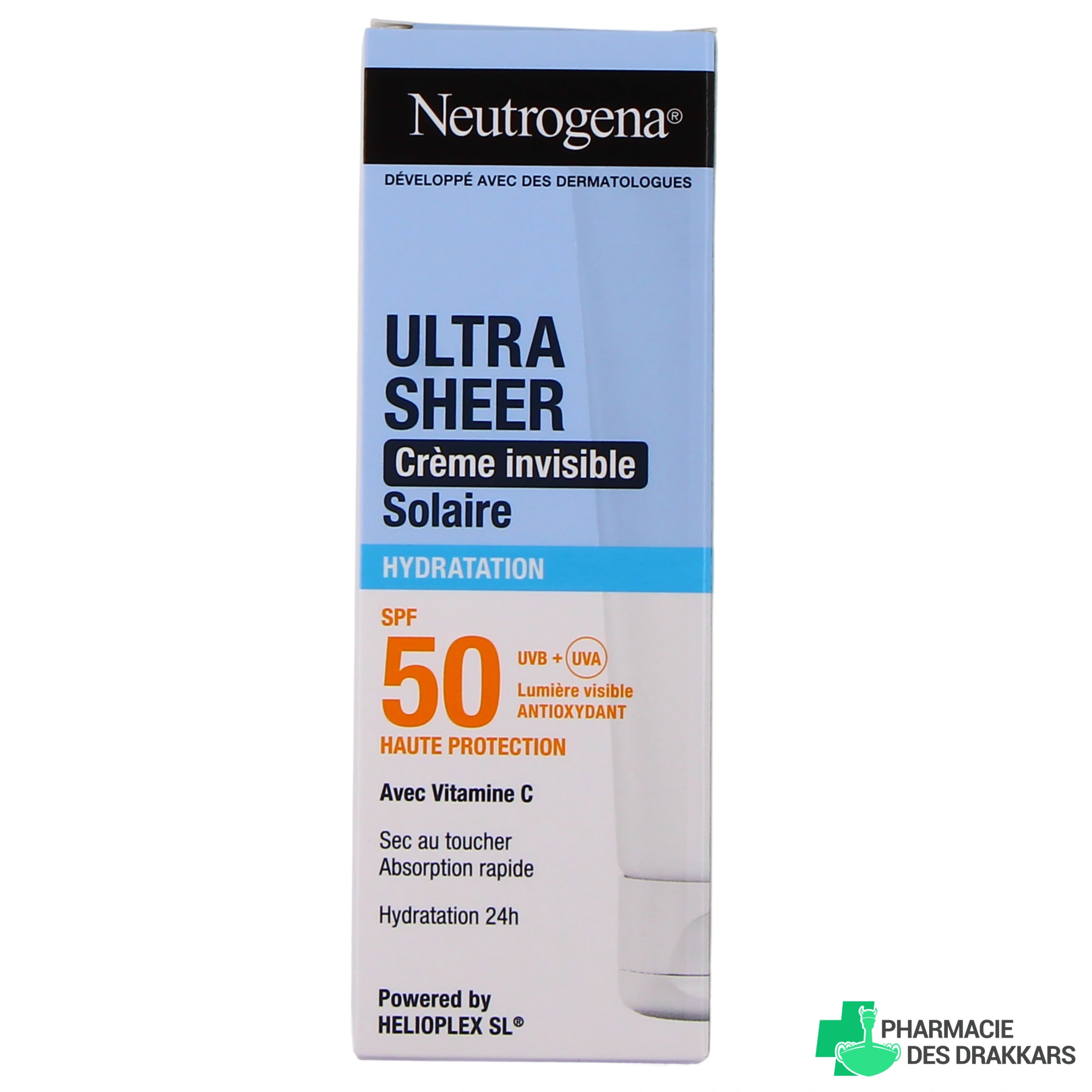 La crème solaire invisible Ultra Sheer SPF 50 de Neutrogena est une protection solaire pour le visage qui apporte en un seul geste une action haute protection, antioxydante et intensément hydratante.