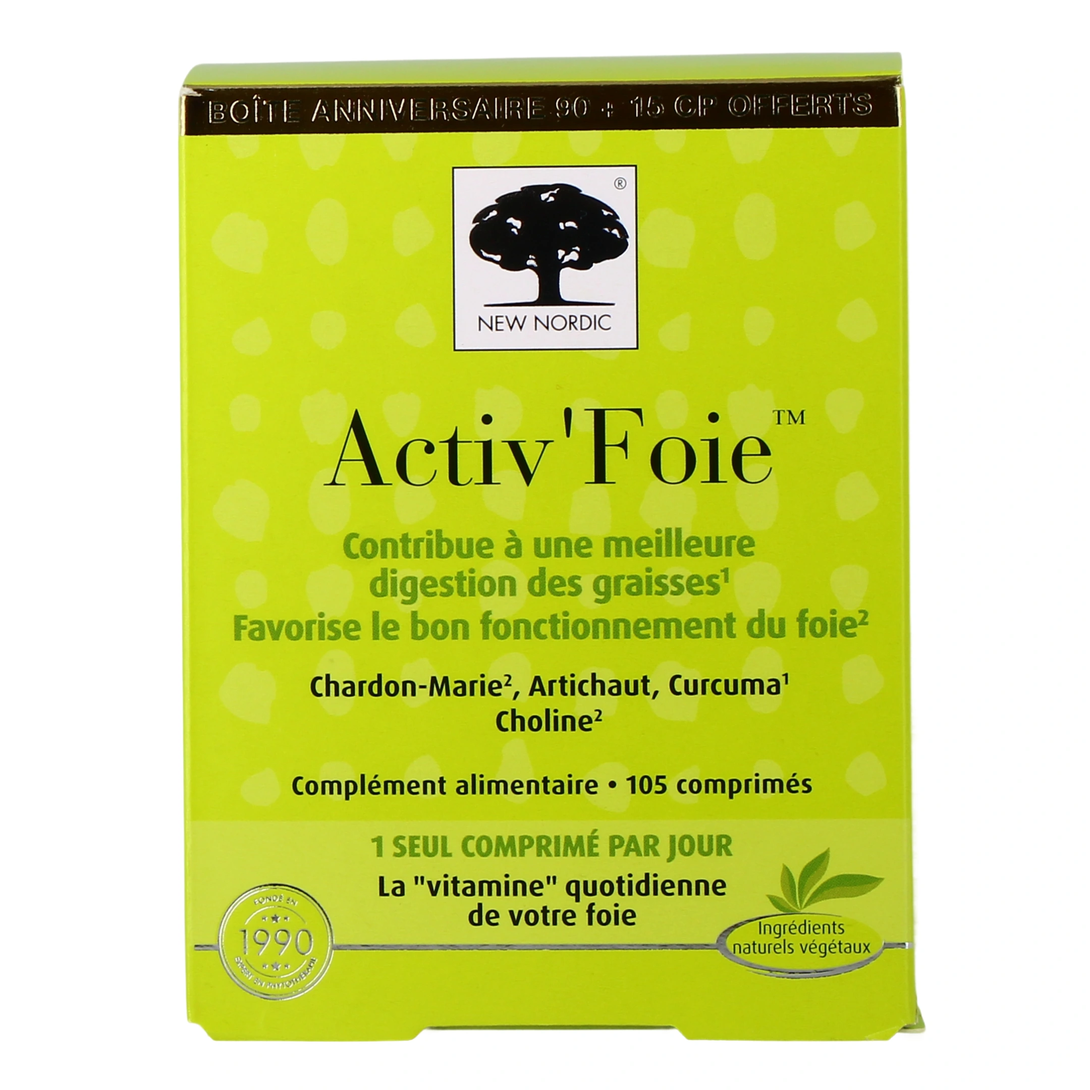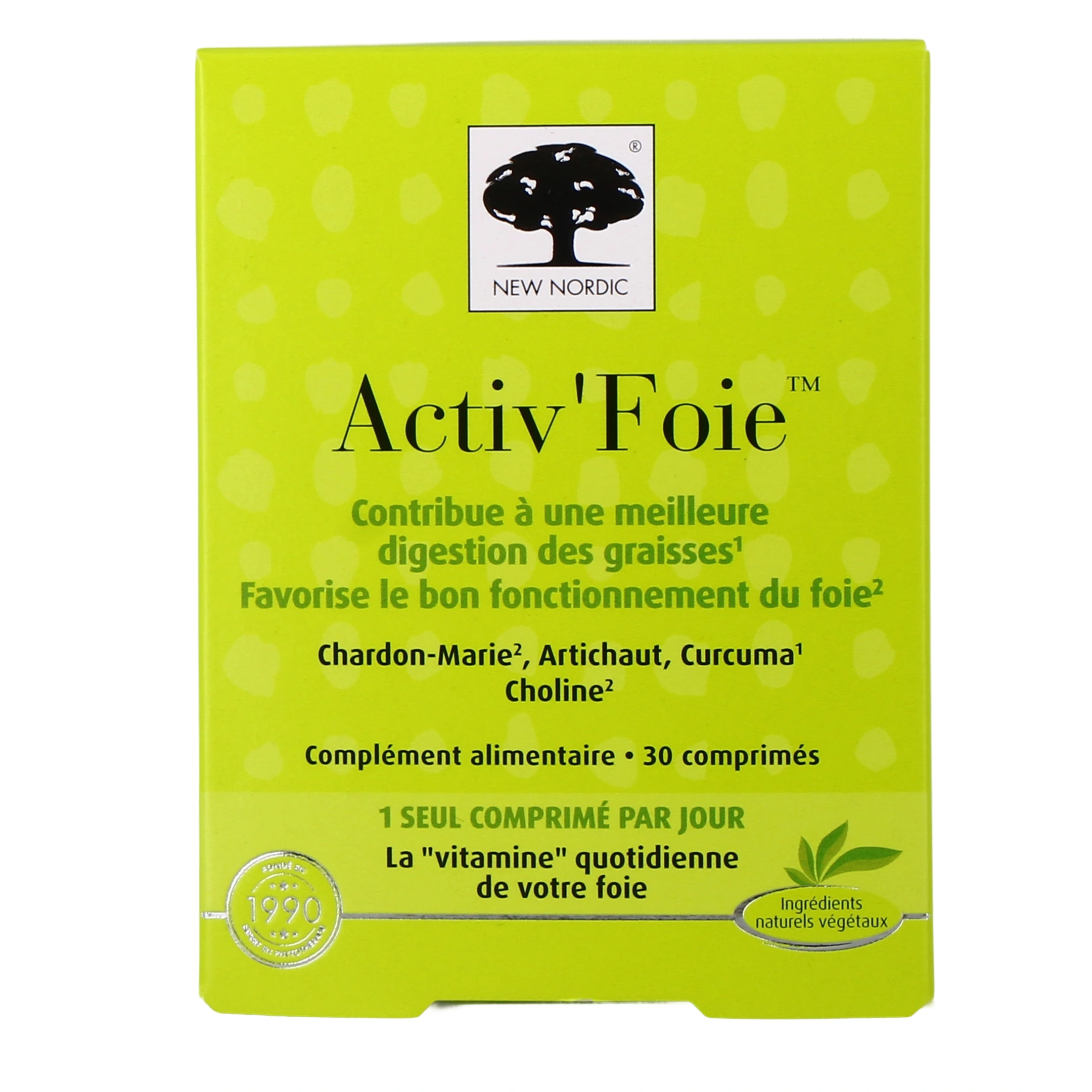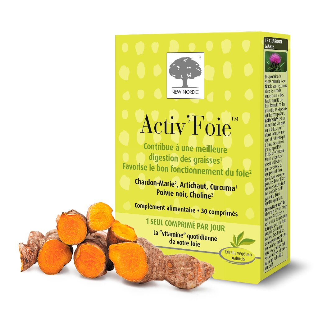 Présenté sous forme de comprimés riches en actifs naturels, Activ Foie est un complément alimentaire mis au point par les laboratoires de recherche végétale New Nordic qui participe à l'allégement du foie qui reçoit un excès de graisses.
