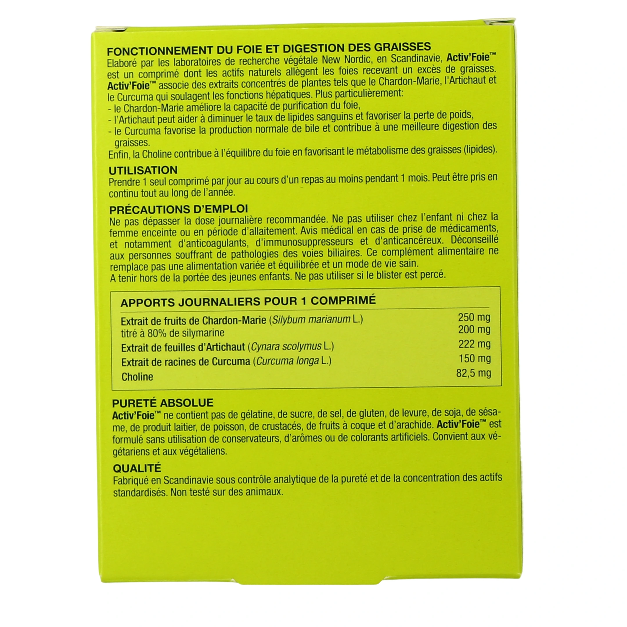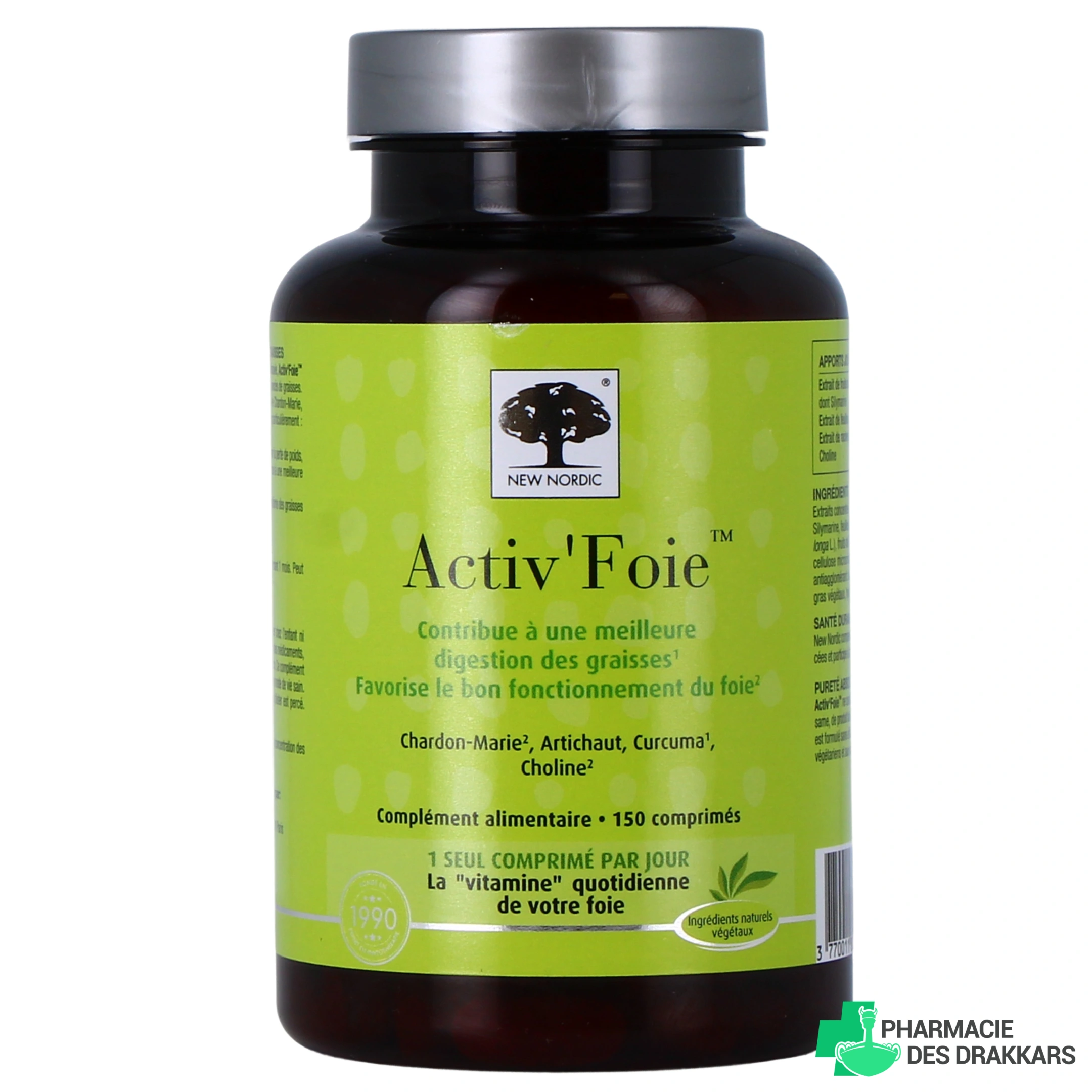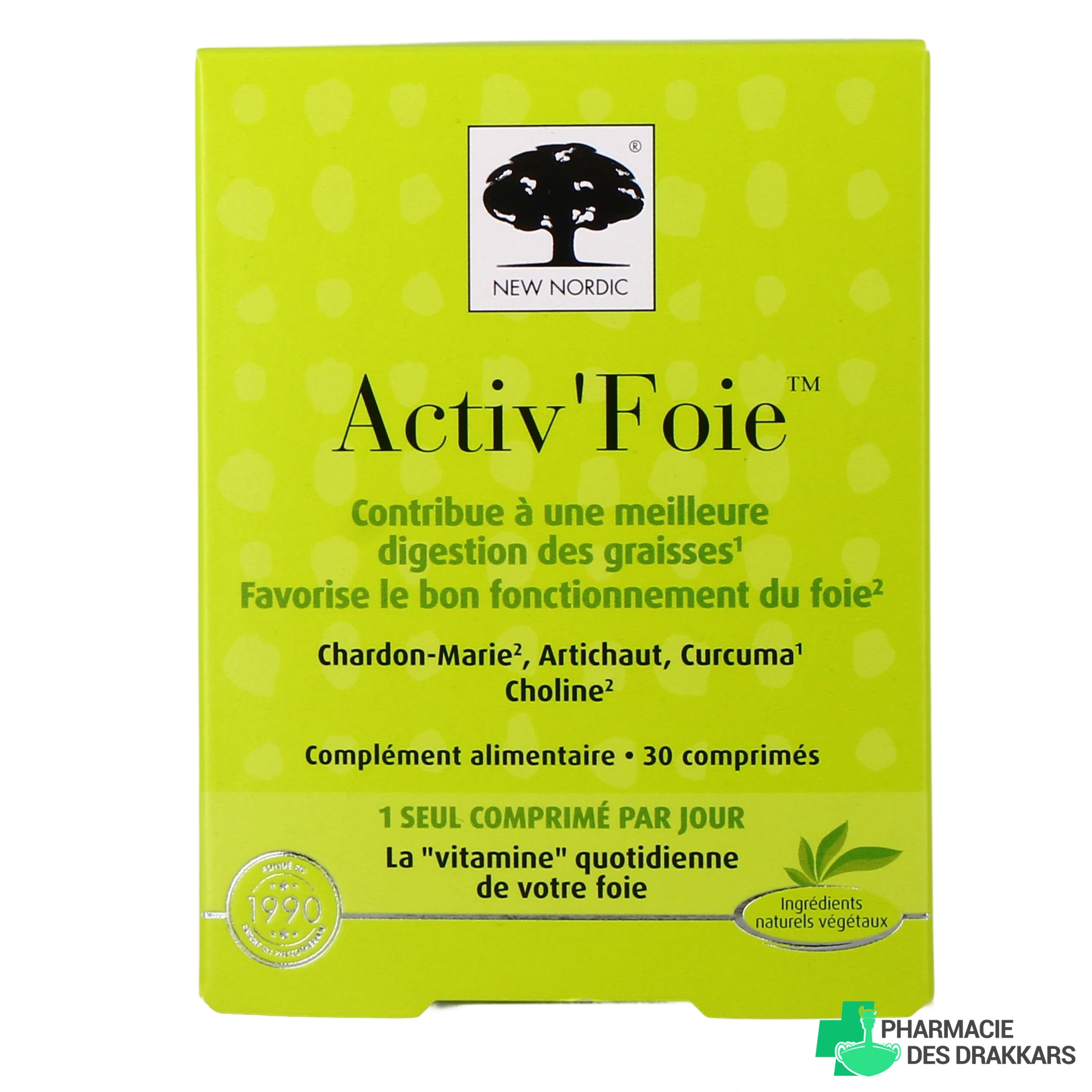 Présenté sous forme de comprimés riches en actifs naturels, Activ Foie est un complément alimentaire mis au point par les laboratoires de recherche végétale New Nordic qui participe à l'allégement du foie qui reçoit un excès de graisses.