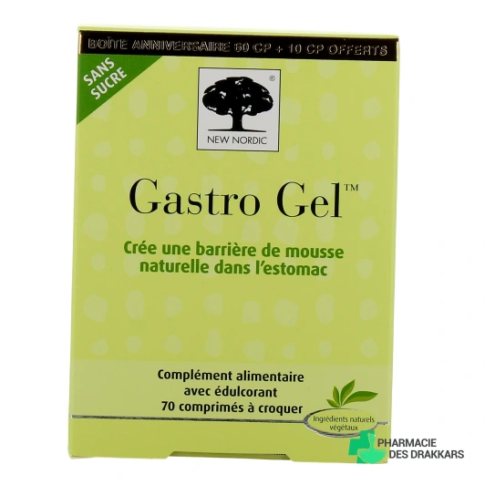 Gastro Gel est un complément alimentaire développé par la marque New Nordic. Formulé avec des ingrédients naturels végétaux, il crée une barrière de mousse naturelle dans l'estomac.
