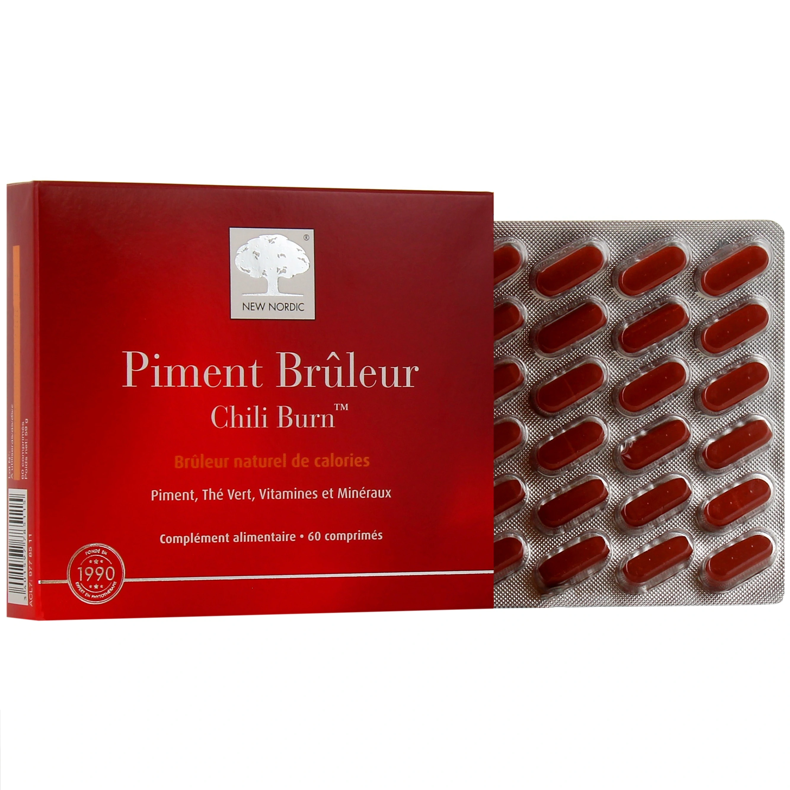 Présentation disponible sur notre pharmacie en ligne pour New Nordic Piment Brûleur : boîte de 60 comprimés.