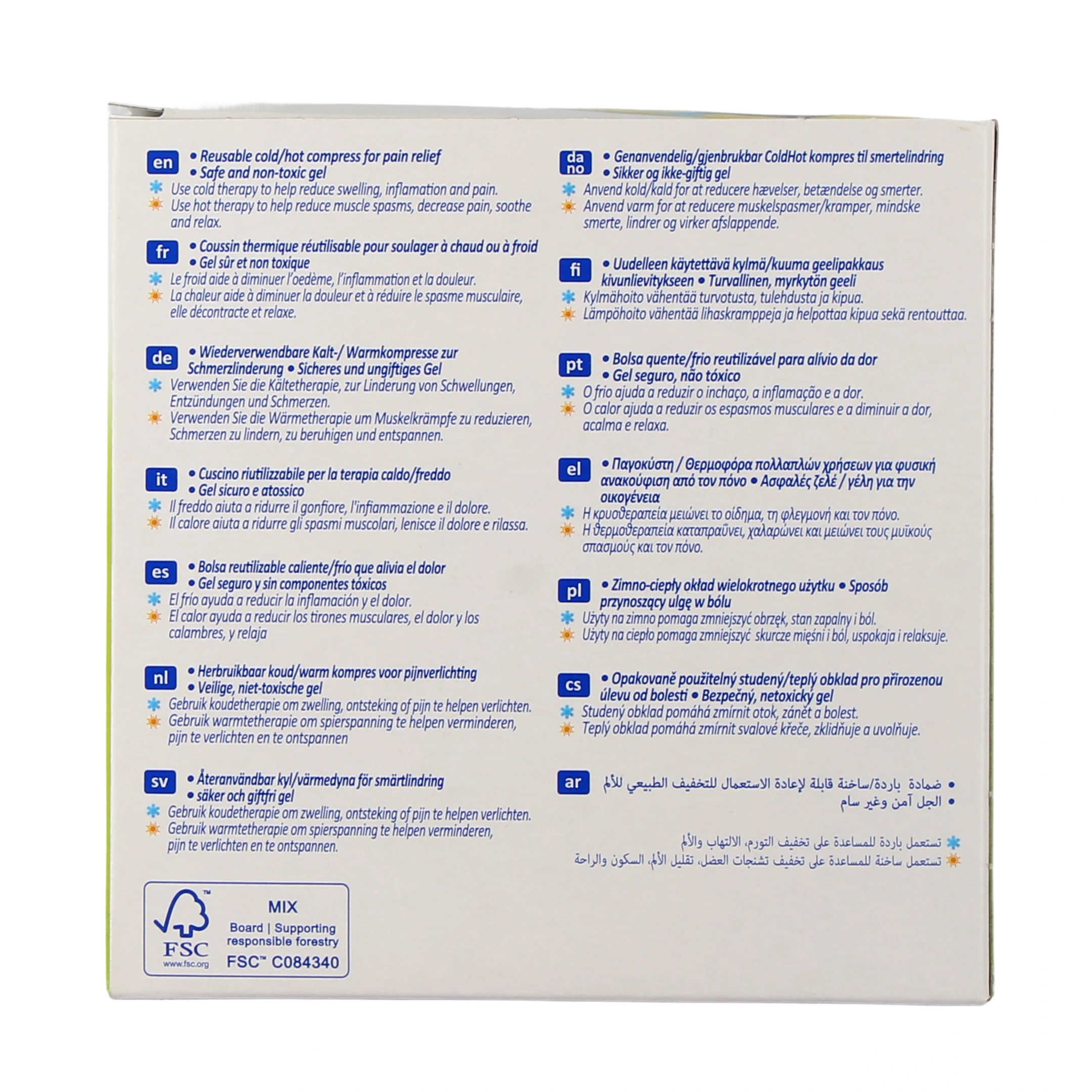 Tous les coussins thermiques Nexcare ColdHot sont des coussins réutilisables fabriqués à l'aide d'un gel non toxique, et qui peut être utilisé par tous les membres de la famille, en veillant à toujours les glisser dans leur housse de protection. Ces coussins représentent une alternative thérapeutique naturelle qui évite de recourir à des médicaments.