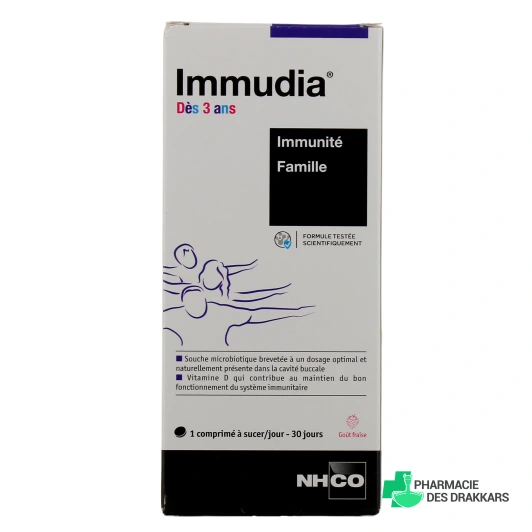 Immudia Immunité 3 ans et plus est le seul à contenir, en plus de la vitamine D, une seule souche microbiotique brevetée qui est naturellement présente dans la cavité buccale de l'enfant, à savoir la Streptococcus salivarius K12 qui est dosée de façon optimale, puisqu'elle figure à hauteur d'1 milliard d'Unités Formant Colonie (UFC) dans une dose journalière.
