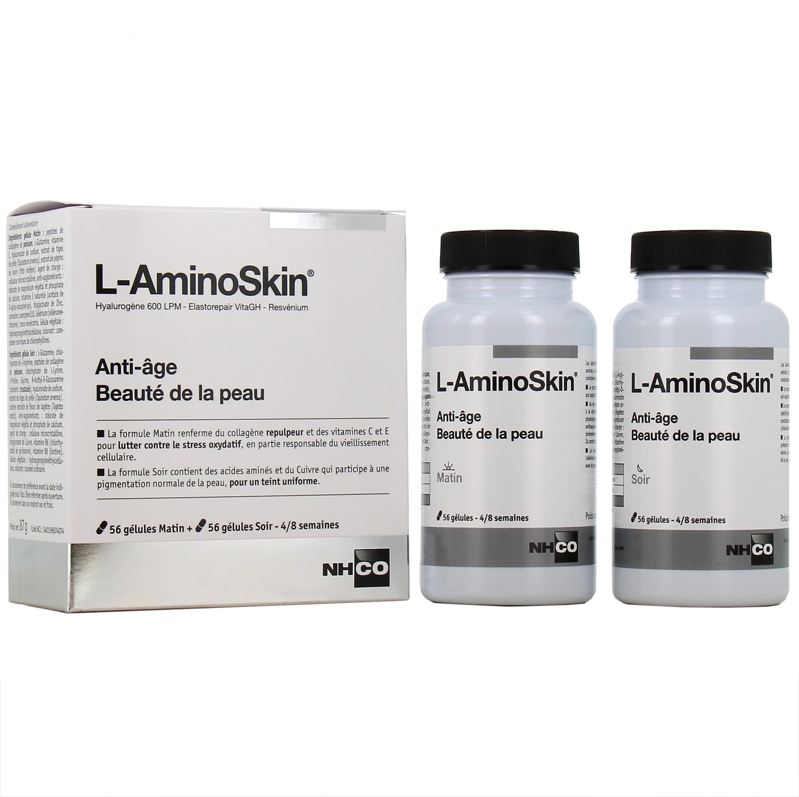 NHCO L-AminoSkin Anti-âge Beauté de la Peau : un complément alimentaire gélules Jour + gélules Nuit, Anti-âge global pour la peau.