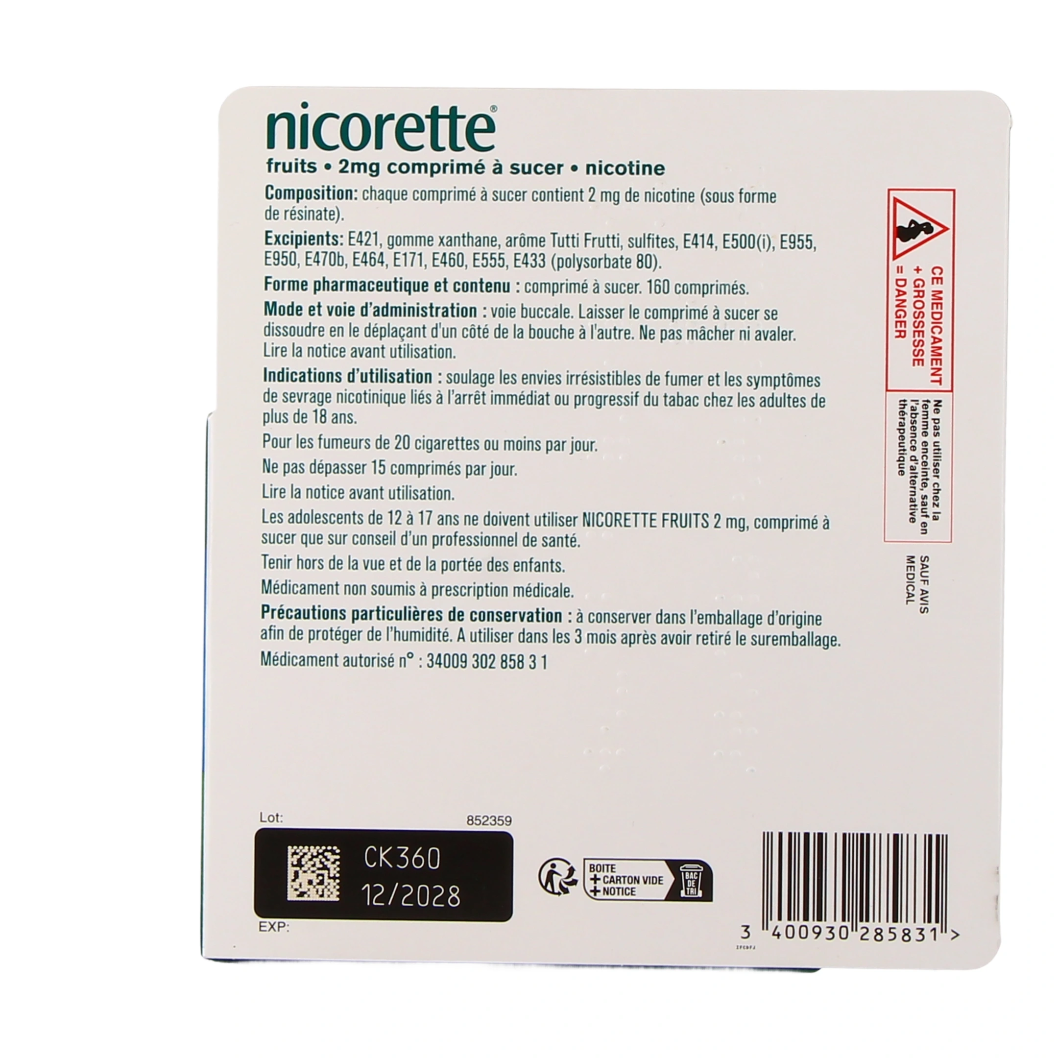 - Nicorette comprimés à sucer - goût Fruits : 4 x 20 comprimés ou 160 comprimés