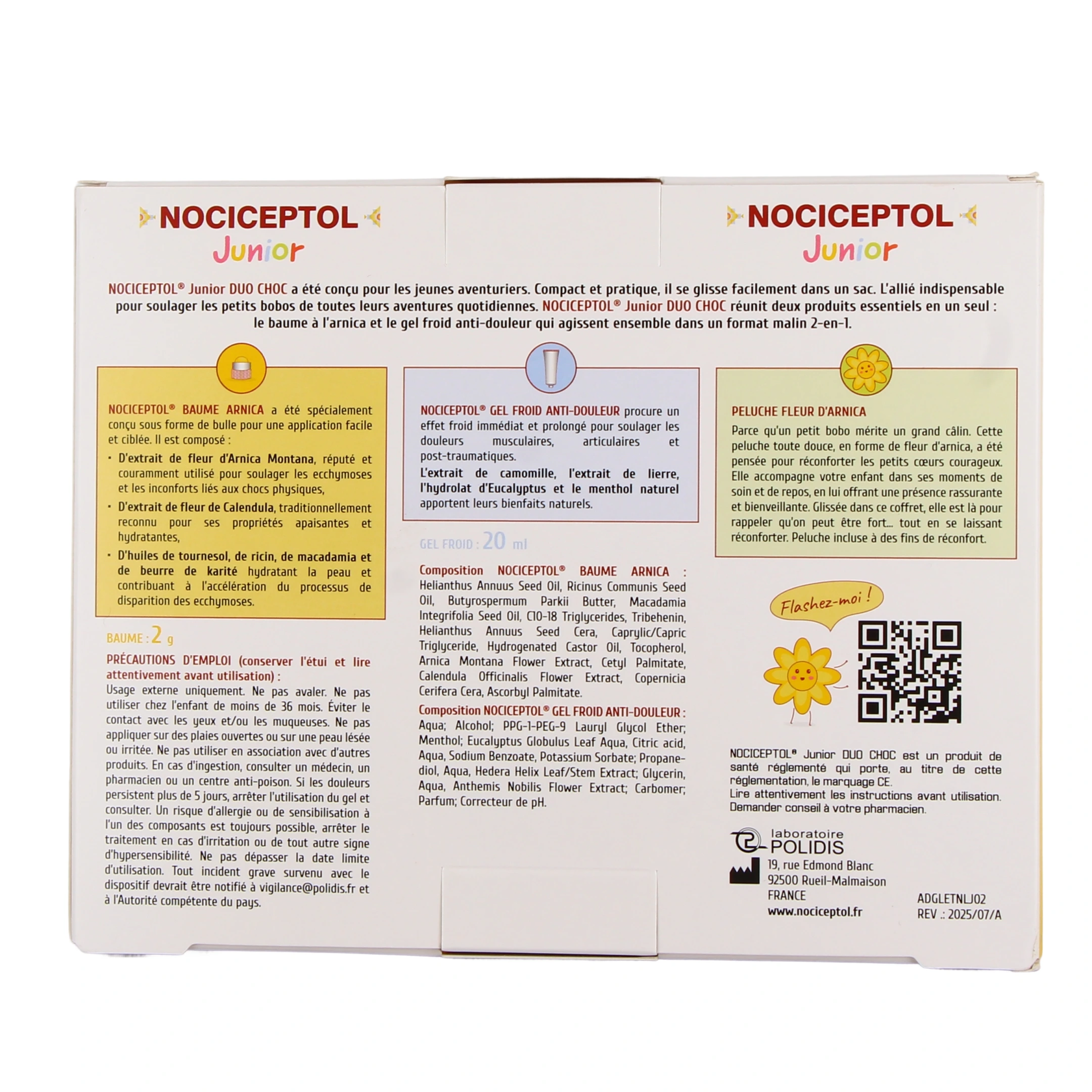 Nociceptol Junior Duo Choc est l'allié indispensable pour soulager rapidement les petits bobos du quotidien chez les enfants dès l'âge de 3 ans. Son format compact et malin réunit deux soins complémentaires : un baume à l'arnica et un gel froid anti-douleur. Facile à transporter et à utiliser, il apaise efficacement les coups, les chocs et les bosses.