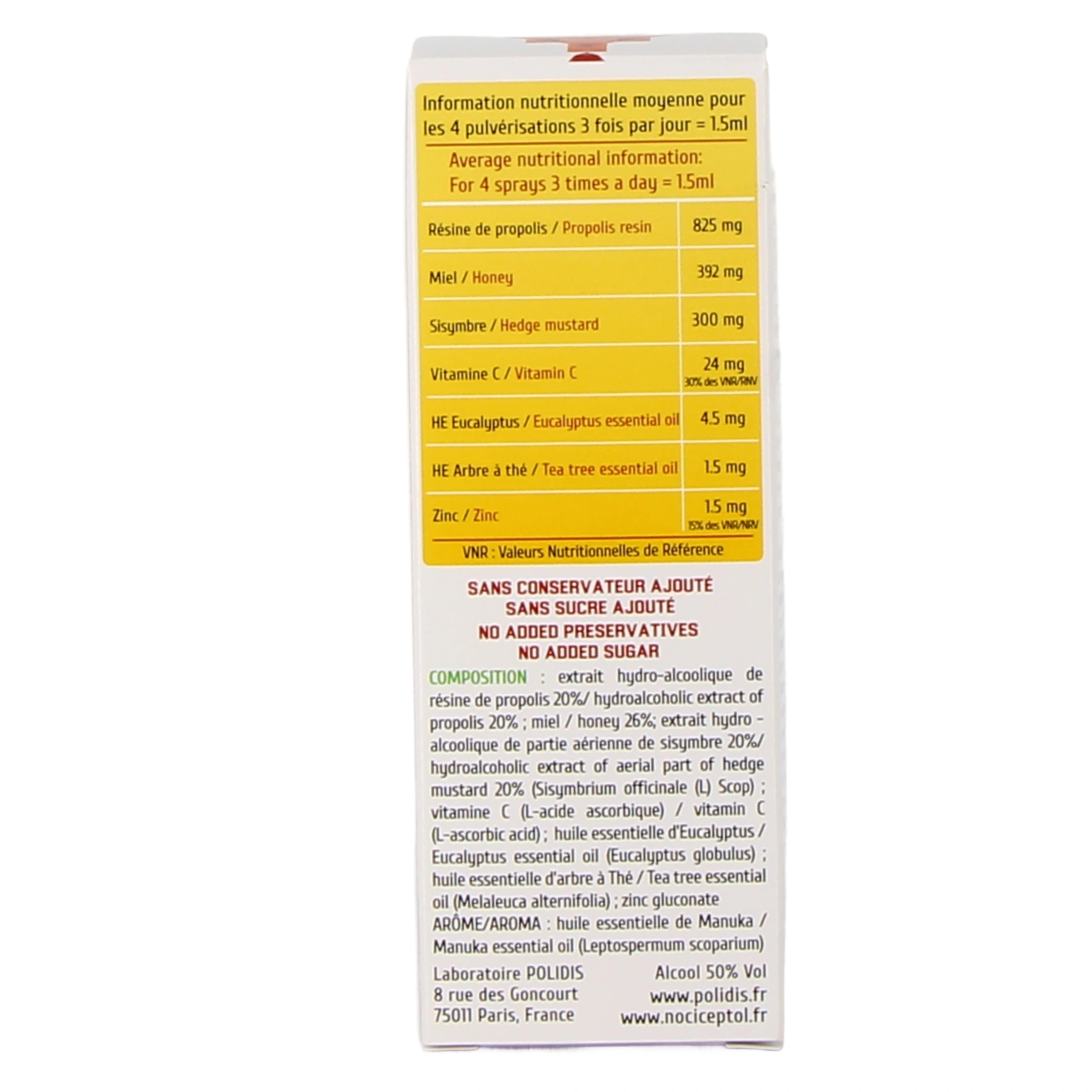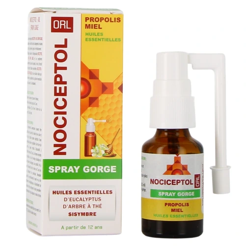 Particulièrement recommandé au cours des changements de saisons ou dès que vous constatez les premiers signes de refroidissement, le complément alimentaire Nociceptol ORL sous forme de spray pour la gorge est formulé à partir de propolis, de miel, et d’huiles essentielles d’eucalyptus et d’arbre à thé, associés à du sisymbre, qui est réputé pour contribuer à calmer les toux grasses, les enrouements et les extinctions de voix. Son utilisation est réservée à l’adulte et à l’enfant de plus de 12 ans uniquement.