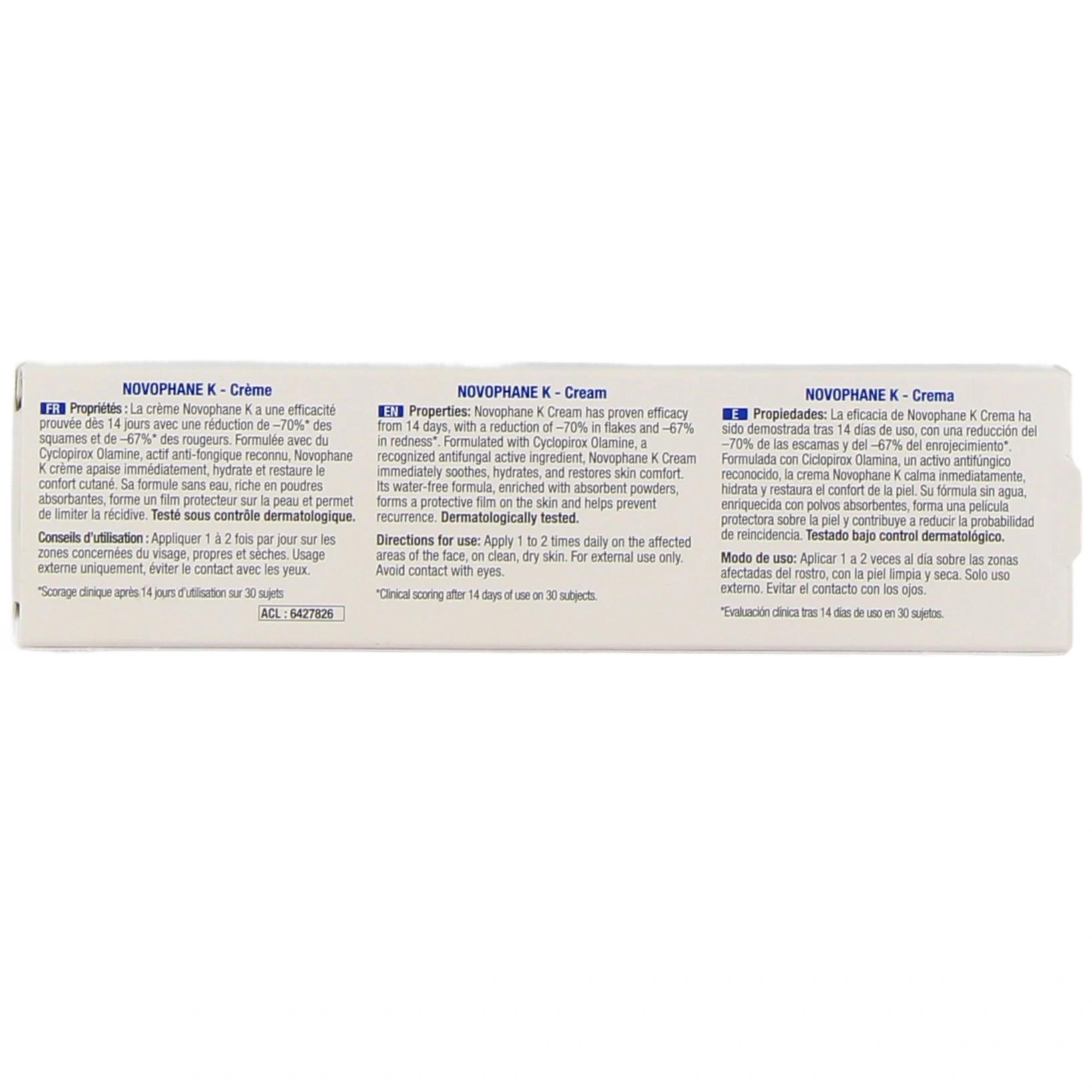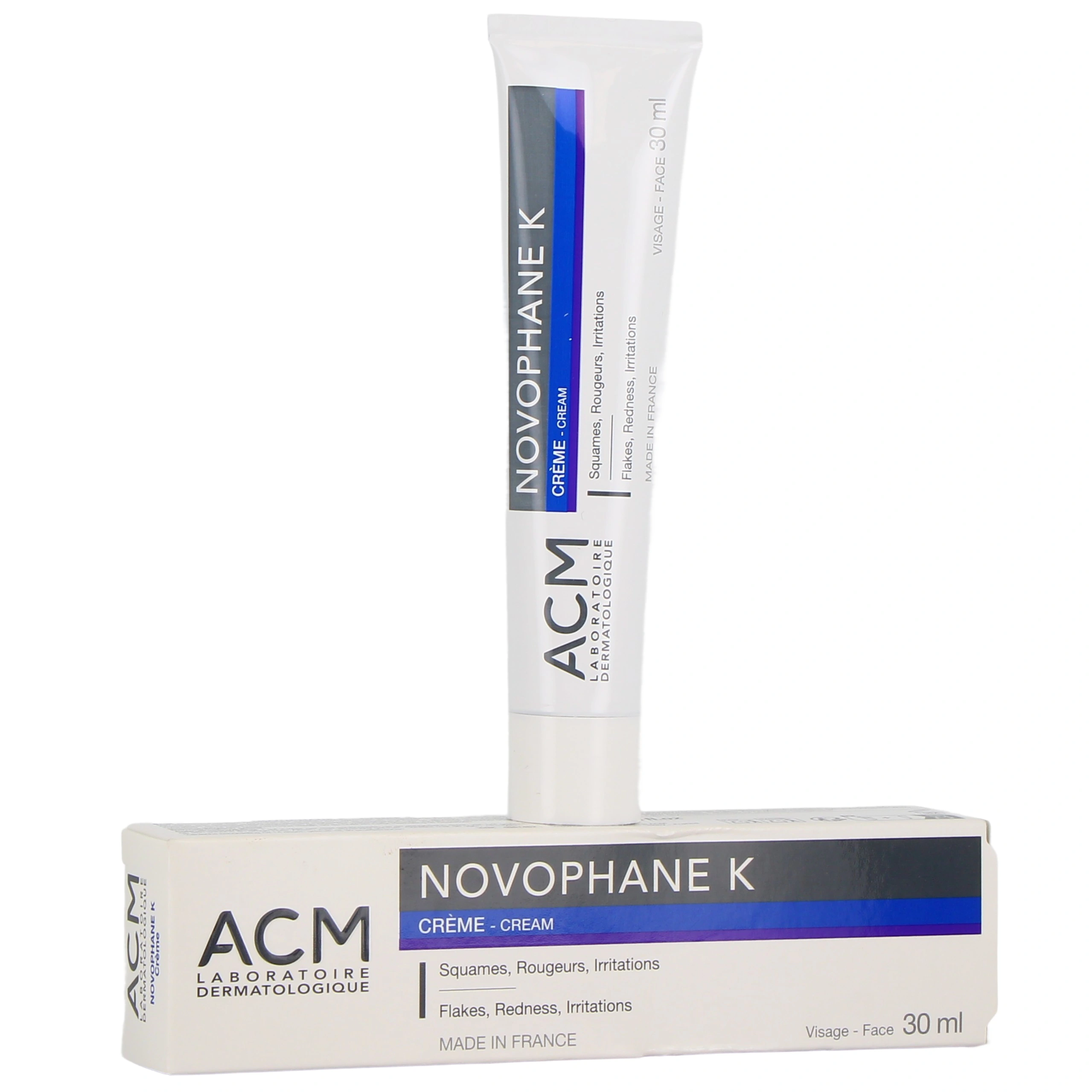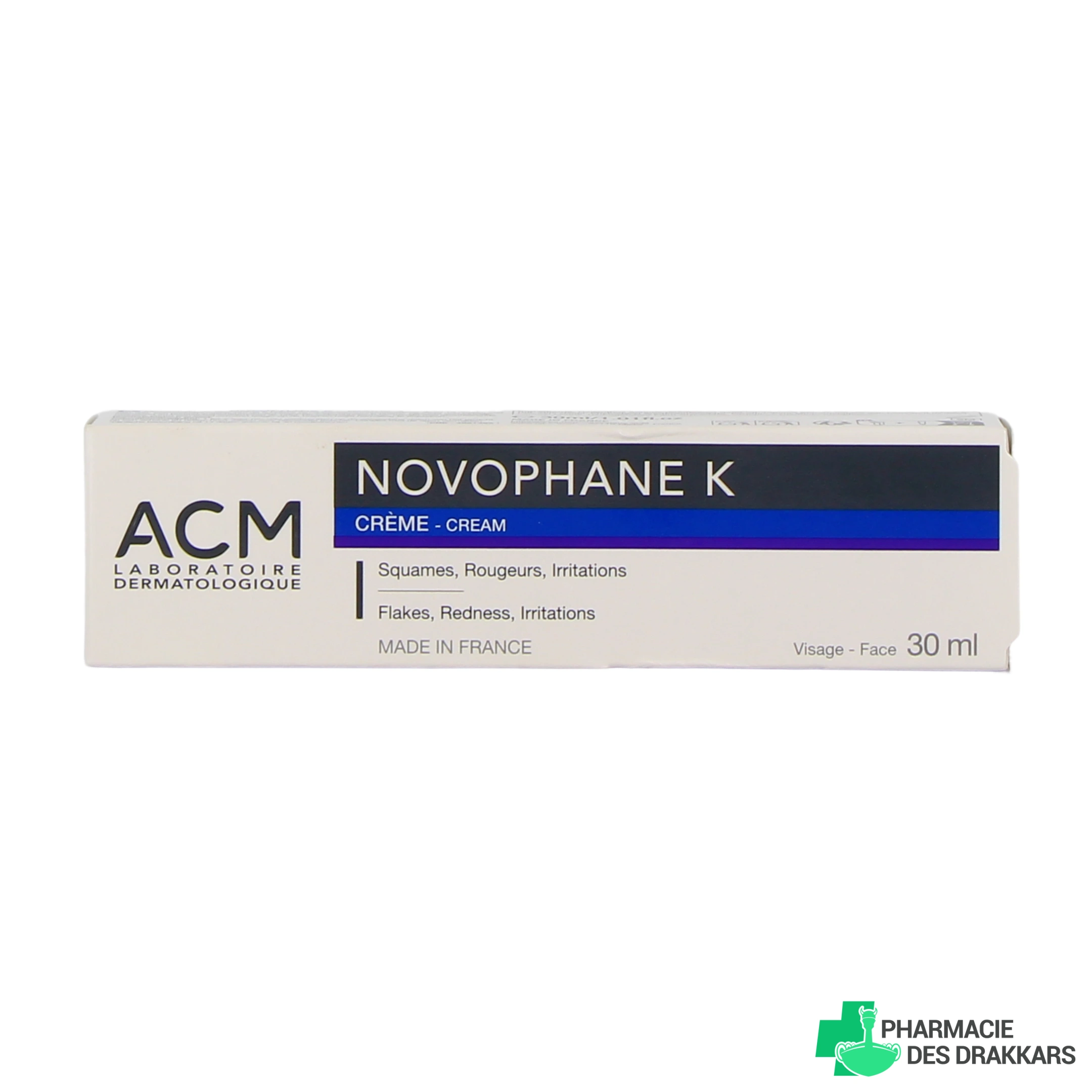 Vous pourrez retrouver la crème Novophane K dans les présentations suivantes chez Pharmacie des Drakkars : tube de 30 ml.