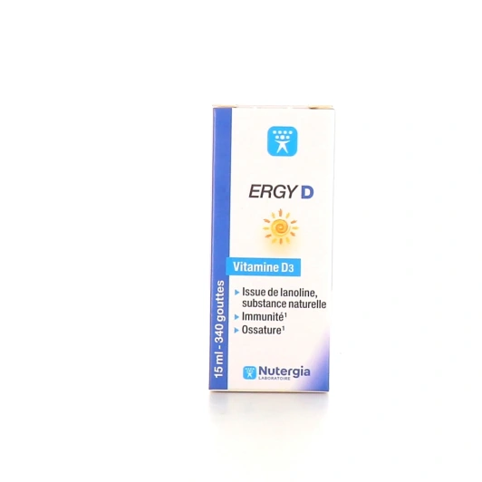 Ergy D Nutergia est un complément alimentaire à base de vitamine D3 d'origine naturelle, qui contribue au bon fonctionnement du système immunitaire et à la santé musculaire et osseuse. Il est particulièrement indiqué dans le cadre de la croissance des enfants.