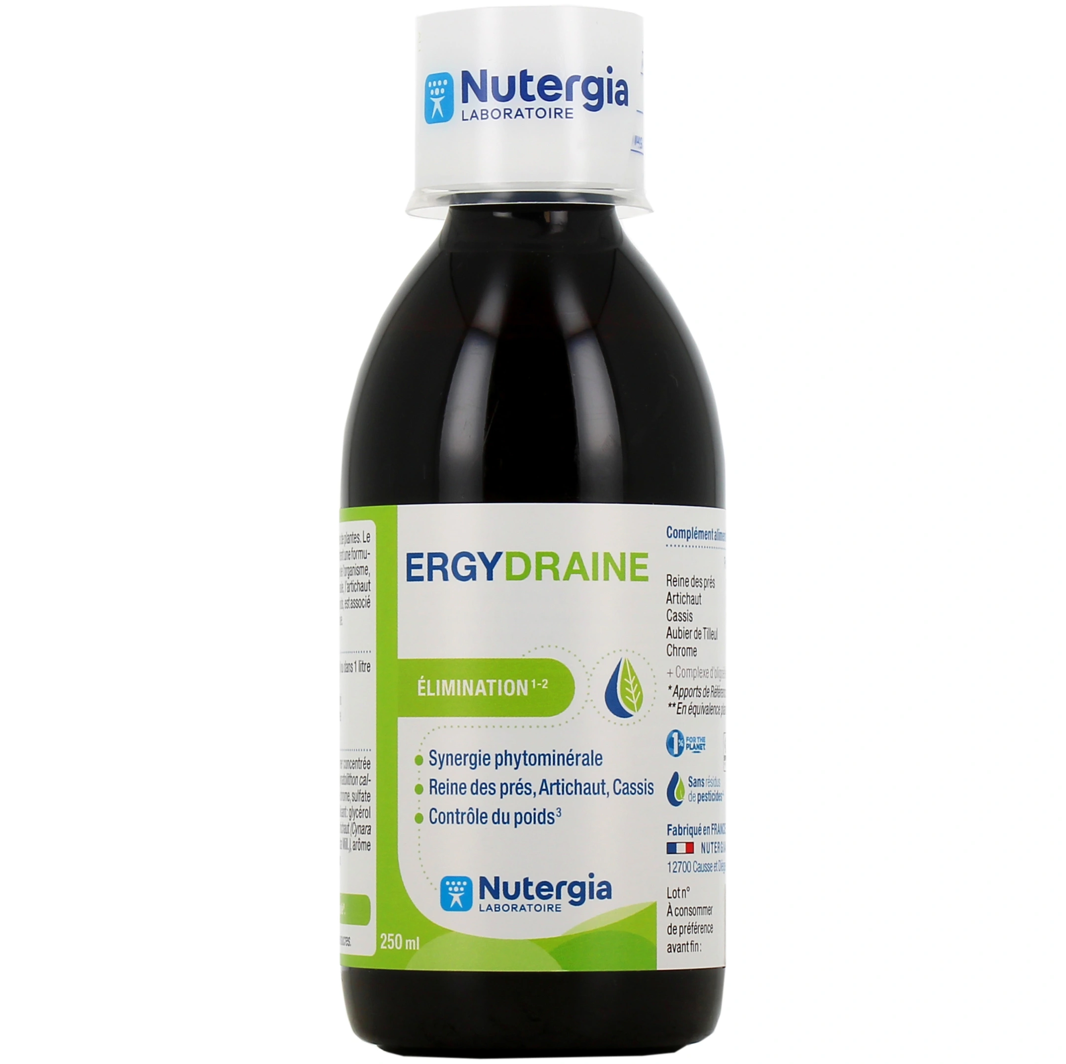 Ergydraine Nutergia est un complément alimentaire à base de Reine des prés, d'artichaut, de cassis, d'aubier, de tilleul et d'oligoéléments utilisés pour une action drainante. Il est particulièrement efficace au moment des changements de saison ou en complément d'un contrôle de poids.