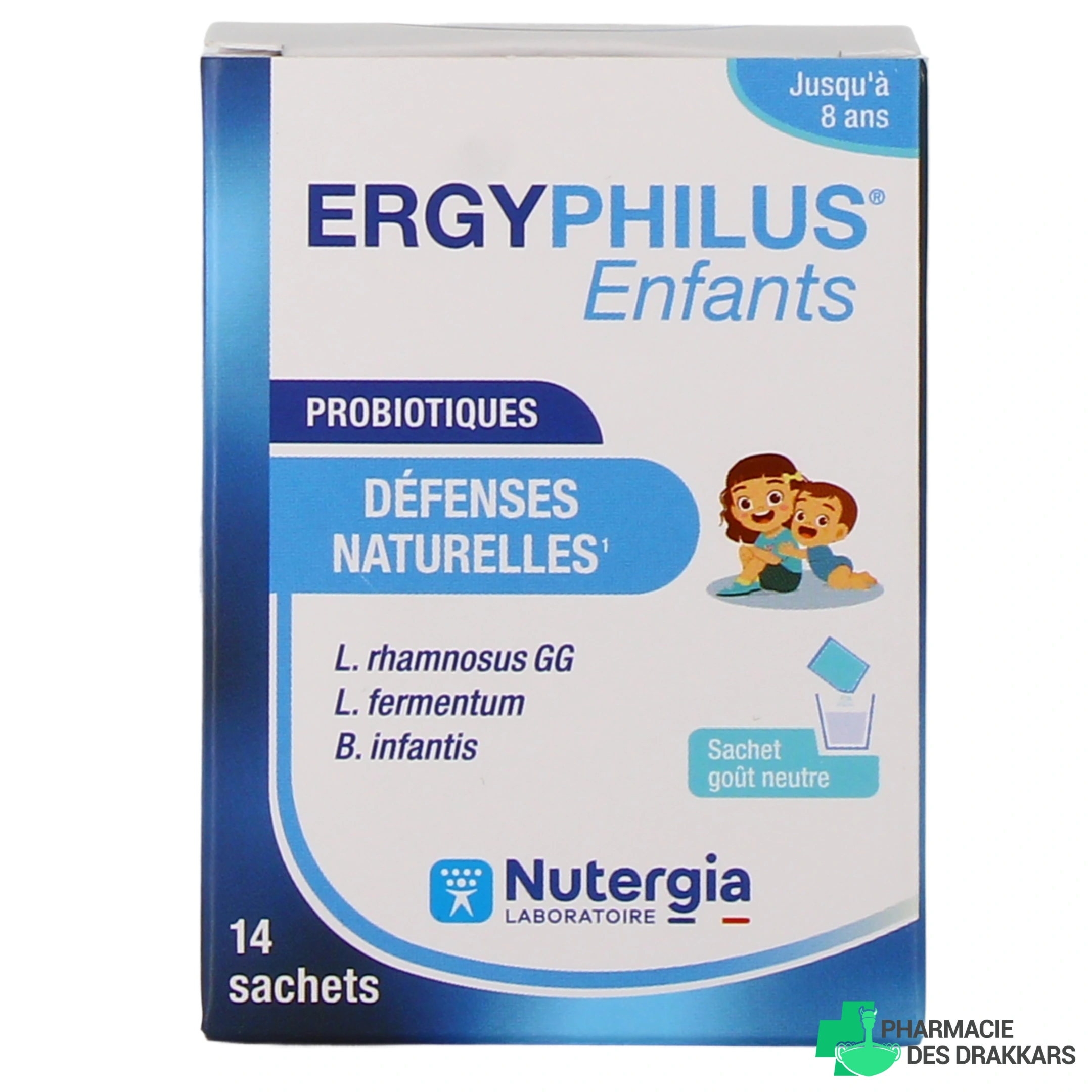 Les conditionnements proposés sur notre pharmacie en ligne pour Nutergia Ergyphilus Enfants : Boîte de 14 sachets ou de 30 sachets.