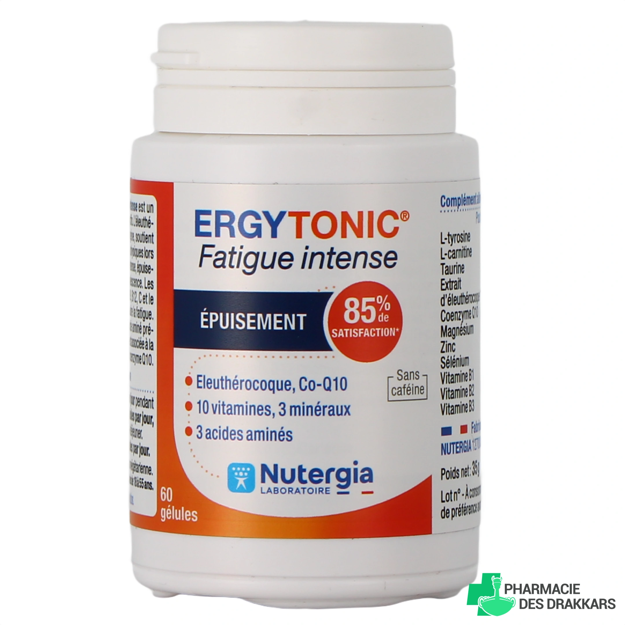Vous pourrez retrouver le complément alimentaire Nutergia Ergytonic Fatigue Intense dans les présentations suivantes sur notre pharmacie en ligne : flacon de 60 gélules.