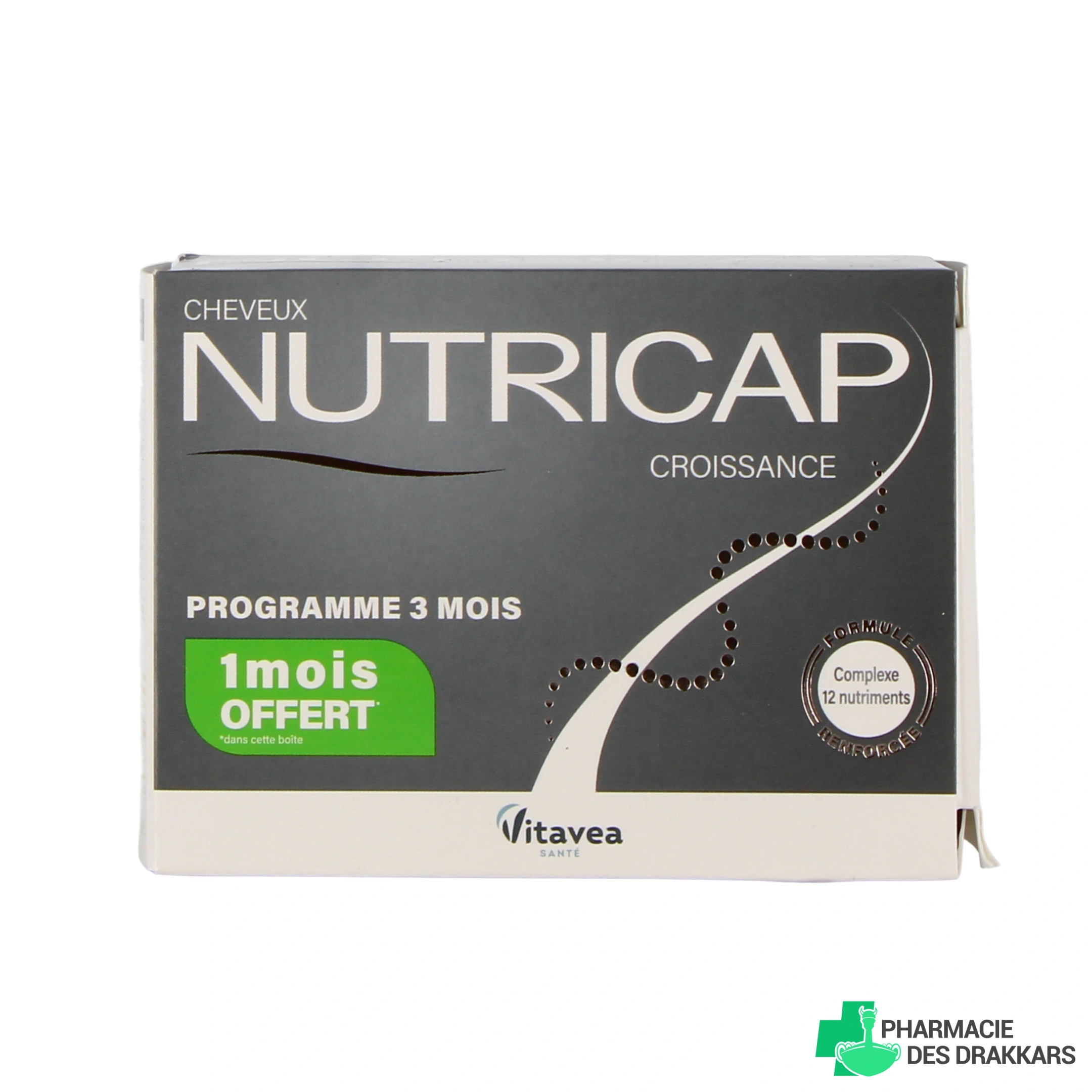 Nutricap Croissance du laboratoire Vitavea est un complément alimentaire à base de vitamines, minéraux, acides aminés et extrait de prêle pour la croissance des cheveux et des ongles. Il se présente sous la forme de gélules.