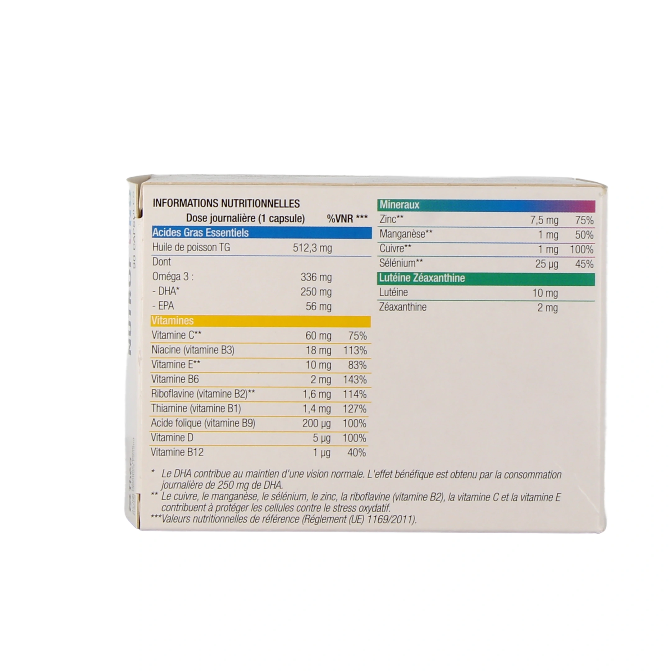 - Le DHA contribue au maintien d’une vision normale. L’effet bénéfique est obtenu par la consommation journalière de 250 mg de DHA.