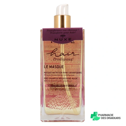Présentation proposée pour le masque Prodigieux Nuxe Hair sur notre pharmacie en ligne : Flacon-pompe de 125 ml
