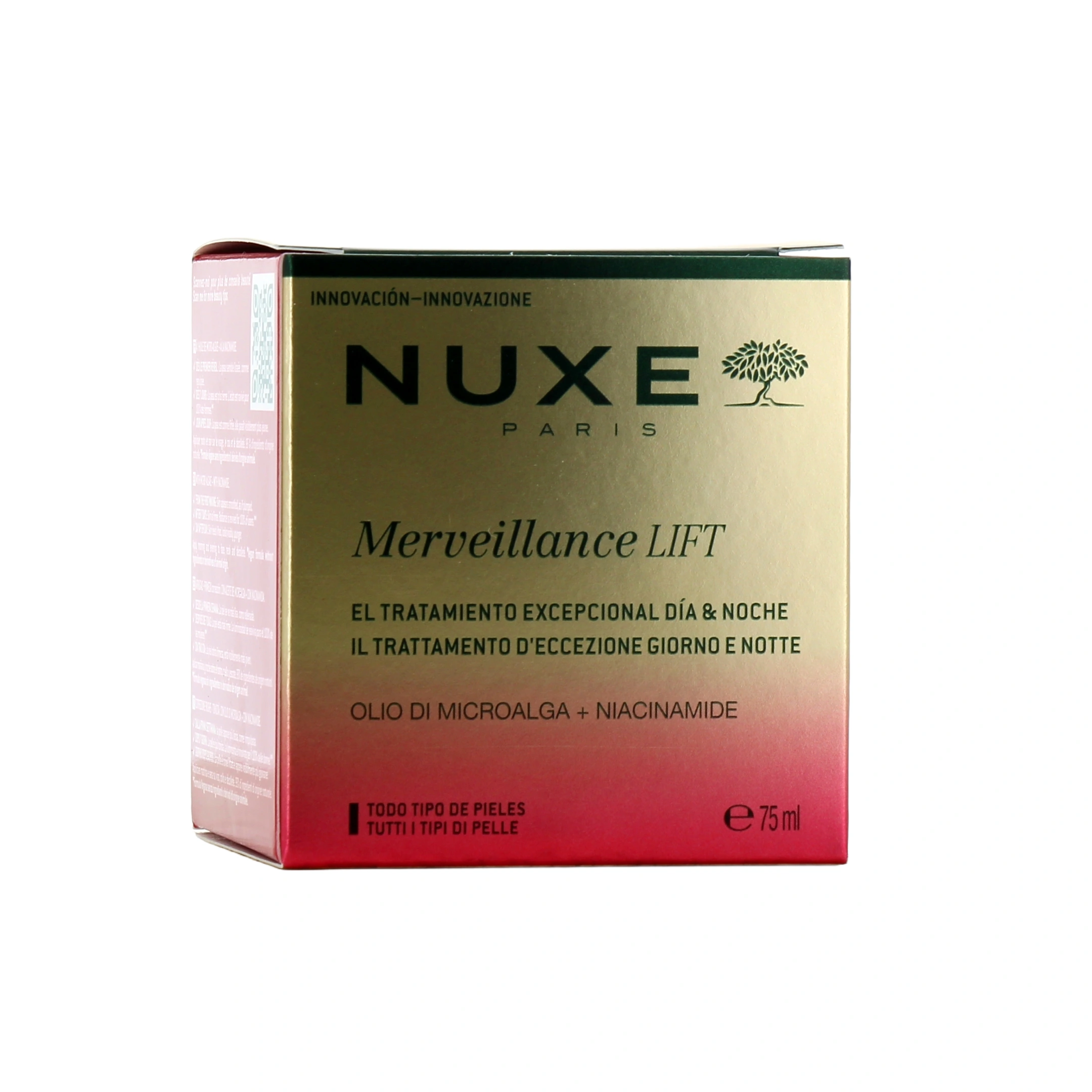 Pour embellir la peau, le soin jour et nuit Merveillance Lift Nuxe est infusé d'huile de micro-algue ultra-corrective qui concentre la puissance de 4 milliards de cellules actives en une seule goutte. Cette actif d'exception favorise la fermeté et la jeunesse de la peau tout en renforçant la jonction dermo-épidermique pour une peau plus résistante et des rides corrigées. Il est associé au niacinamide, actif anti-âge de référence aux puissantes propriétés anti-oxydantes et protectrices.
