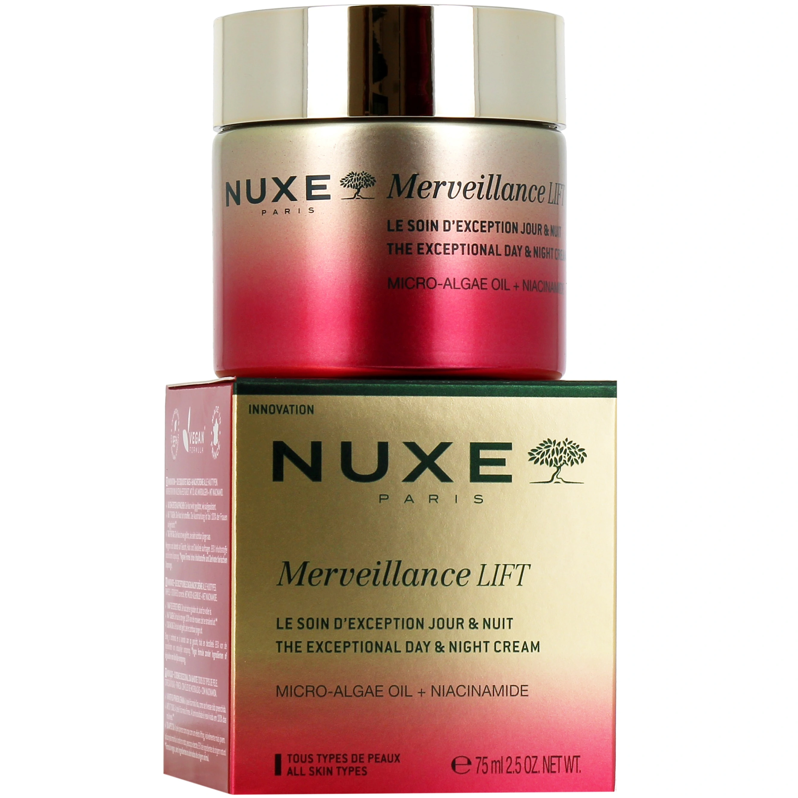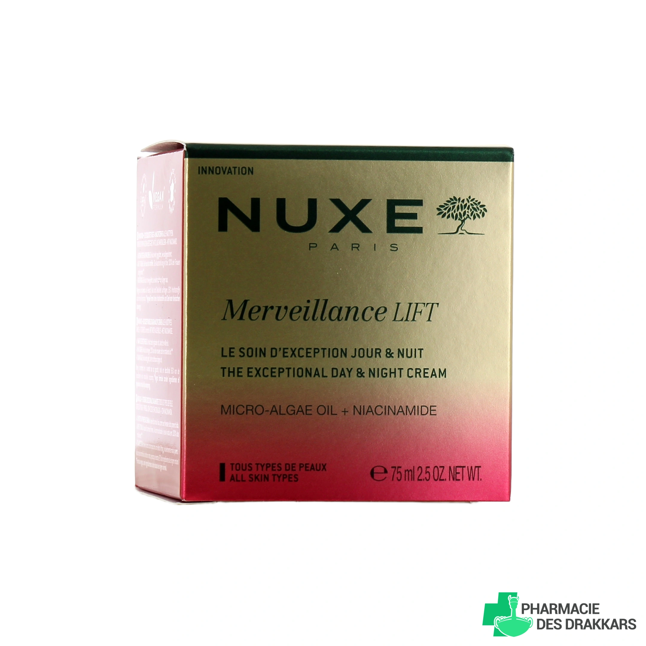 Présentation disponible sur la pharmacie en ligne des Drakkars pour Nuxe Merveillance Lift Soin d'Exception Jour & Nuit : pot de 75 ml.