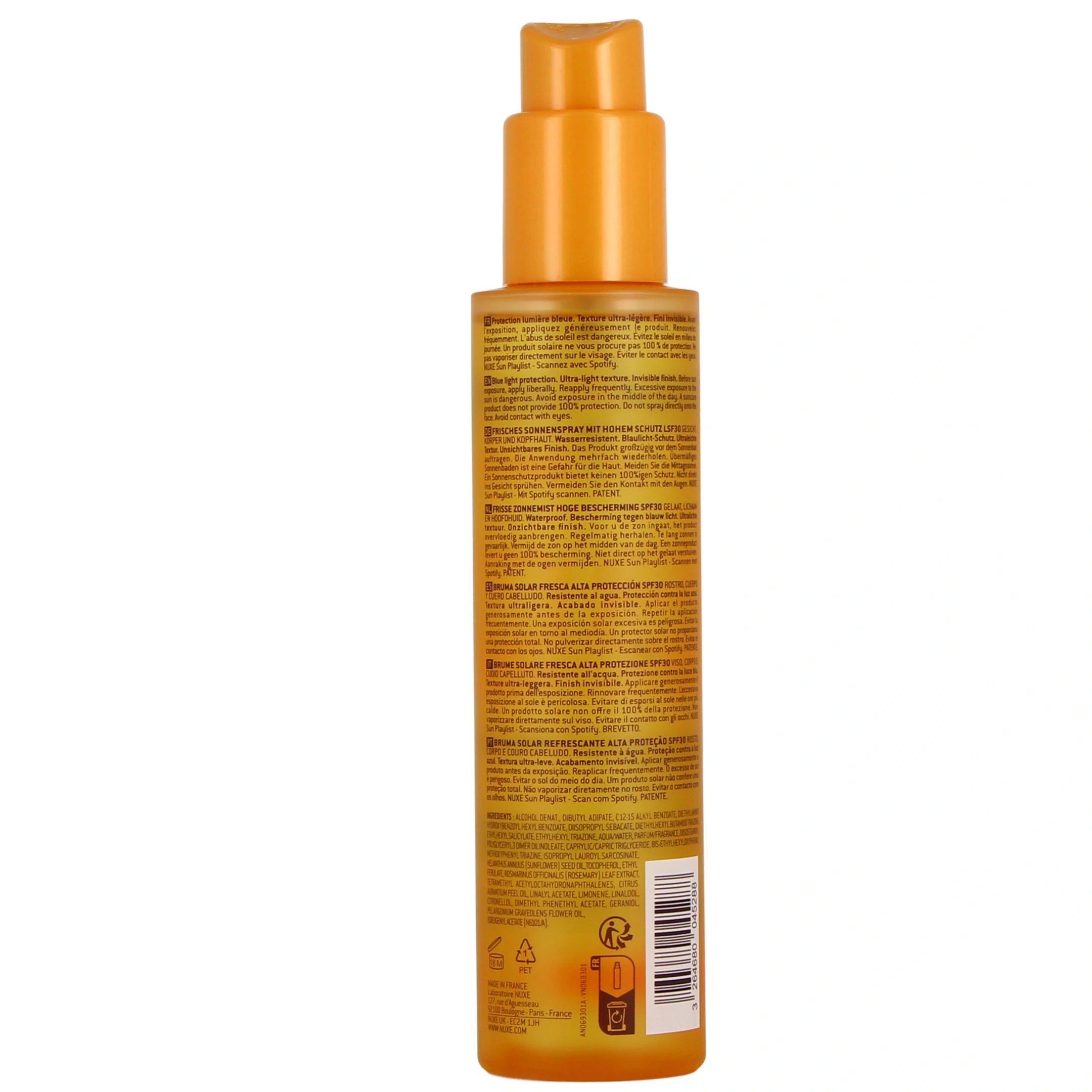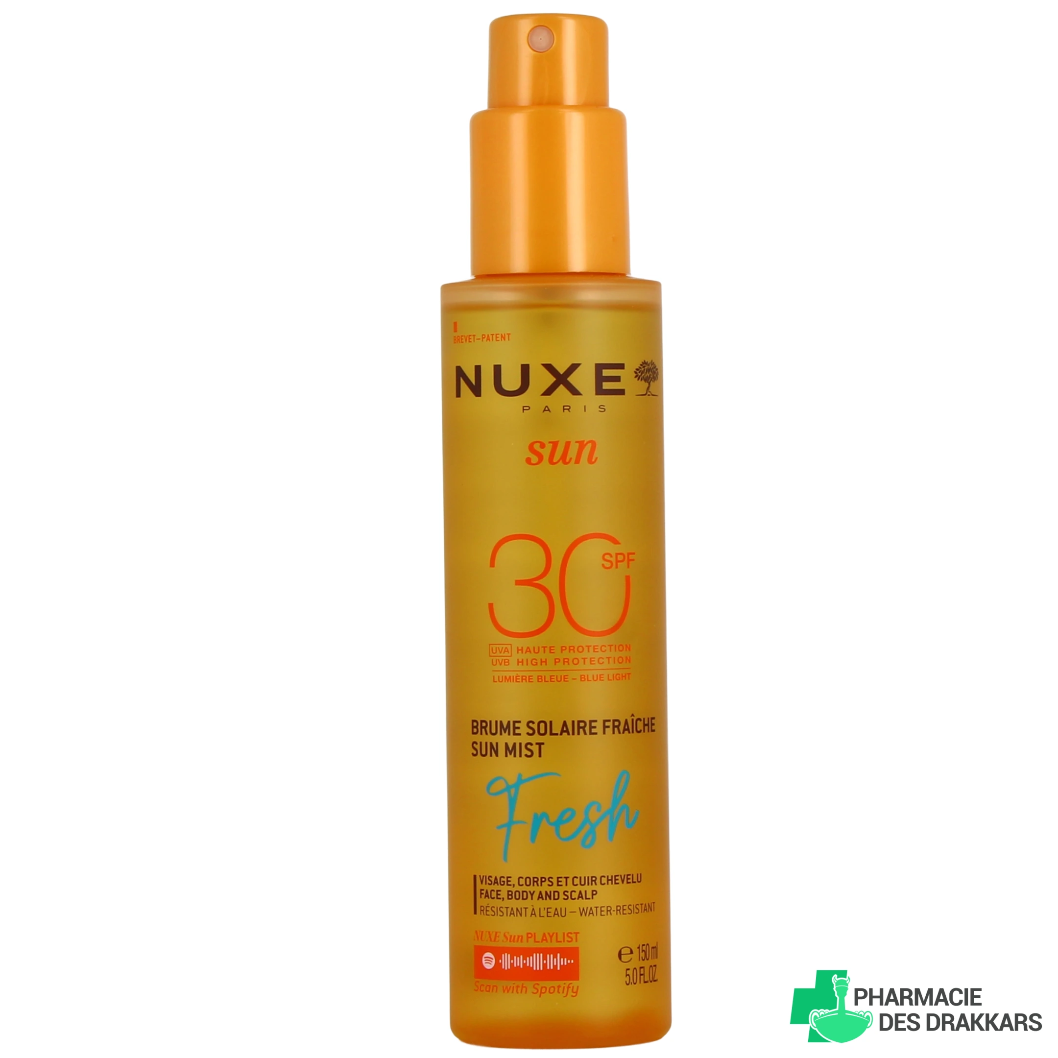 Vous pourrez sélectionner la brume solaire fraîche Nuxe Sun SPF 30 parmi les présentations suivantes sur notre pharmacie en ligne : flacon spray de 150 ml.