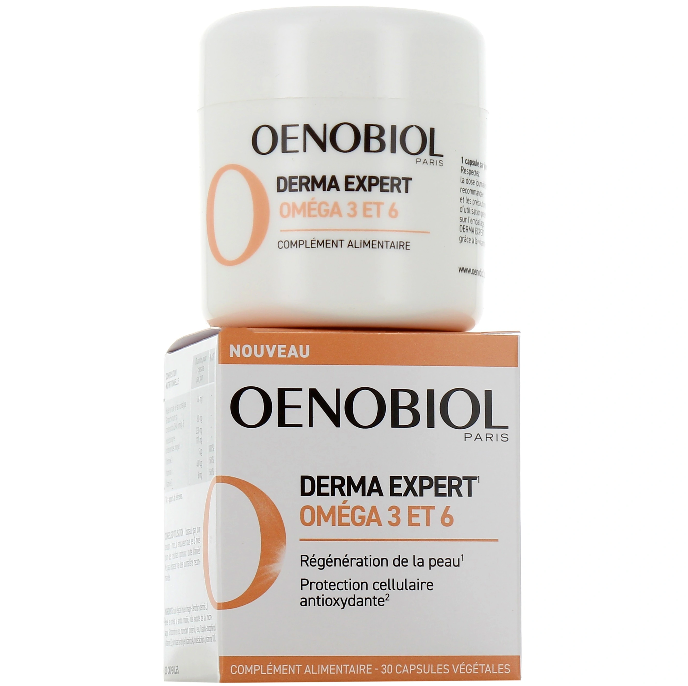 Présentation proposée pour Derma Expert Oméga 3 et 6 Oenobiol sur la pharmacie en ligne des Drakkars : Boîte de 30 capsules