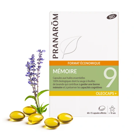 Pranarom continue d'innover en créant le nouveau Oléocaps 9 Mémoire, un complément alimentaire à base d'huiles essentielles 100% pures, naturelles et biologiques, pour :