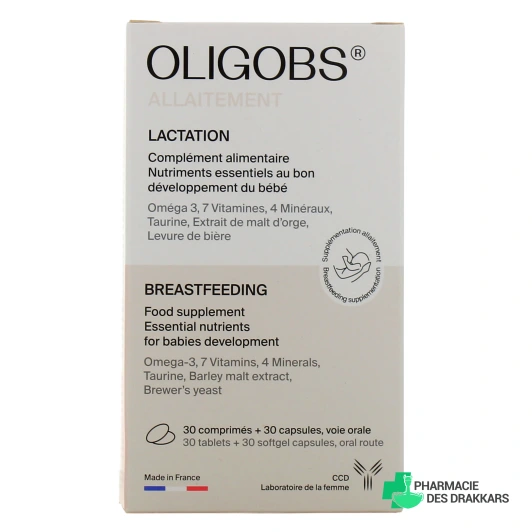 Oligobs Allaitement est un complément alimentaire élaboré par le laboratoire CCD, spécialisé dans la santé des femmes. Il soutient la lactation et contient des nutriments essentiels au bon développement du bébé.