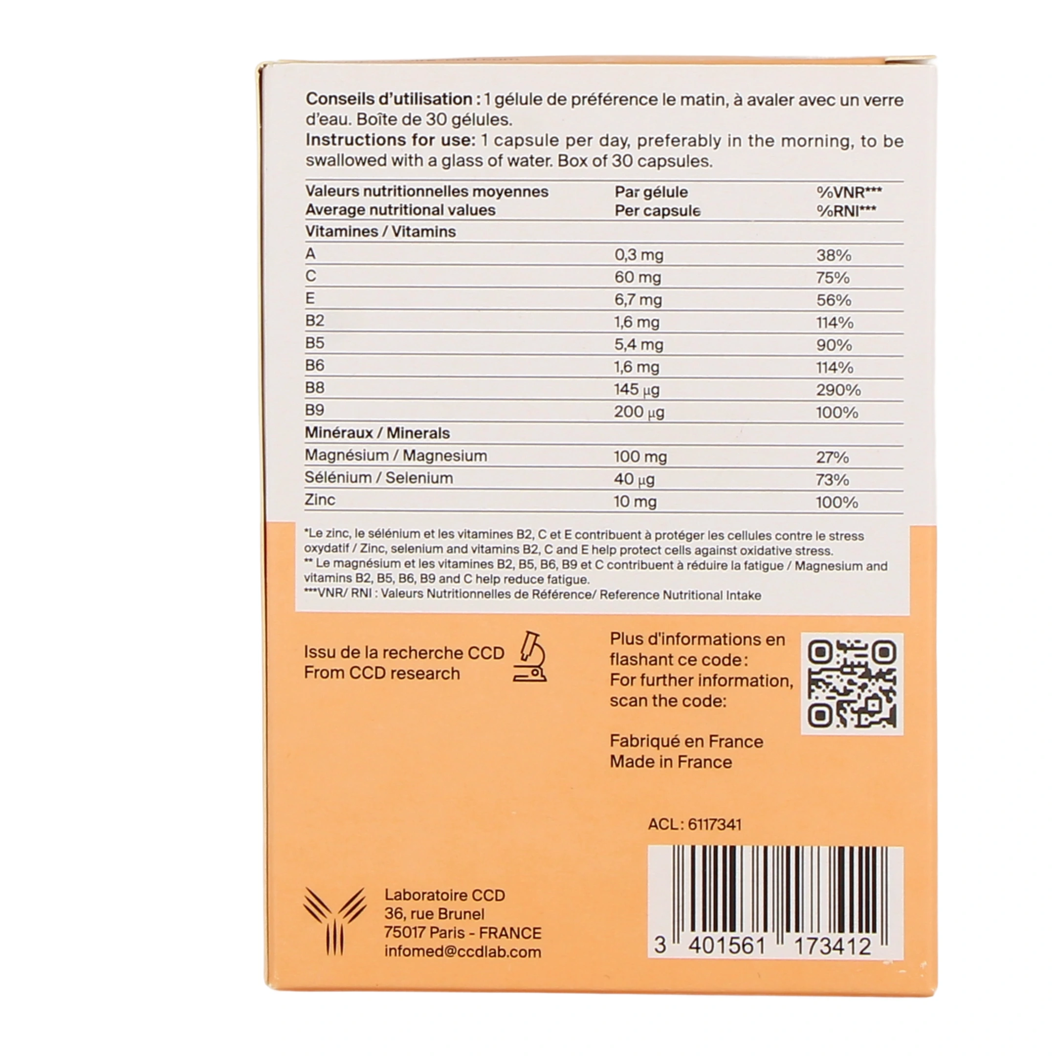 - Du zinc, du sélénium et des vitamines B2, C et E, qui contribuent à protéger les cellules du stress oxydatif.