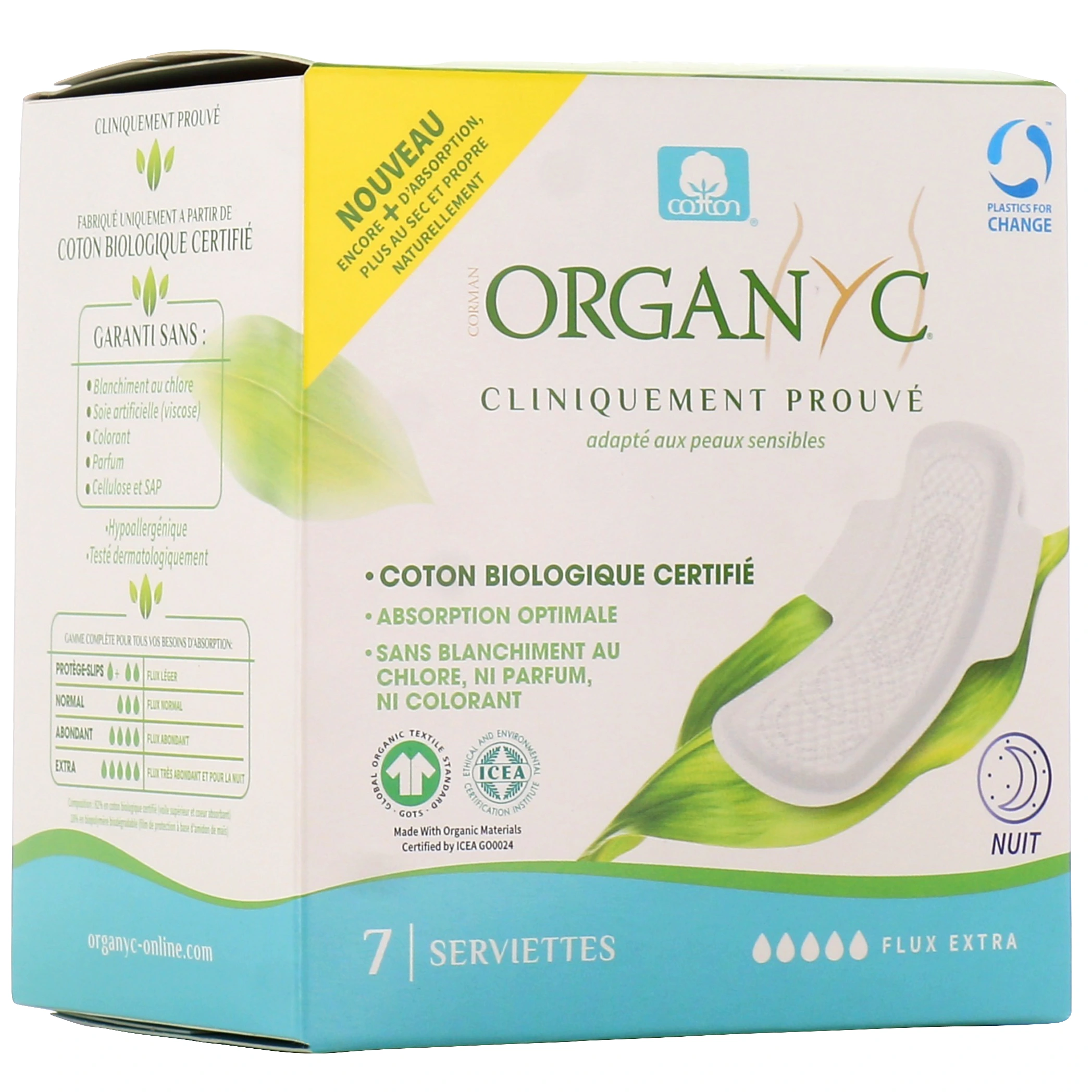 - Boîte de 7 serviettes Extra-Nuit Bio ;