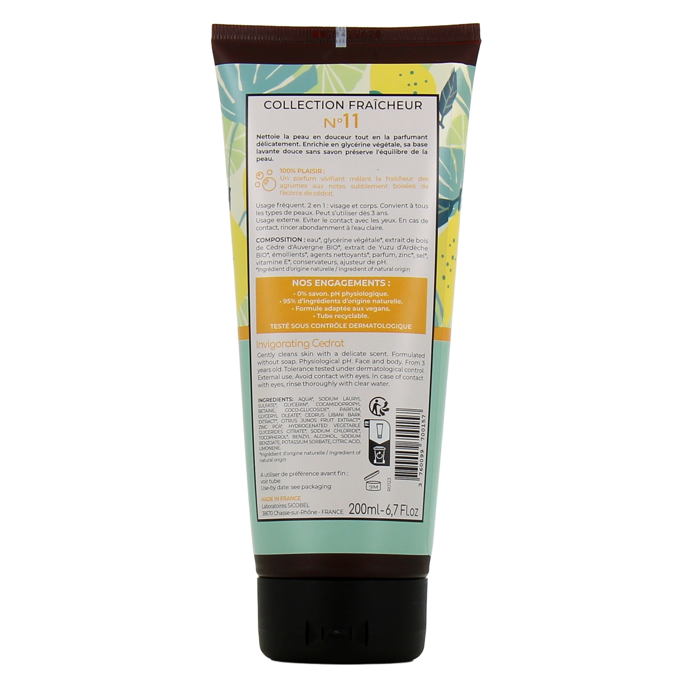 - gel douche Vivifiant Cédrat en tube de 100 ml, 200 ml et flacon-pompe 1 litre ;