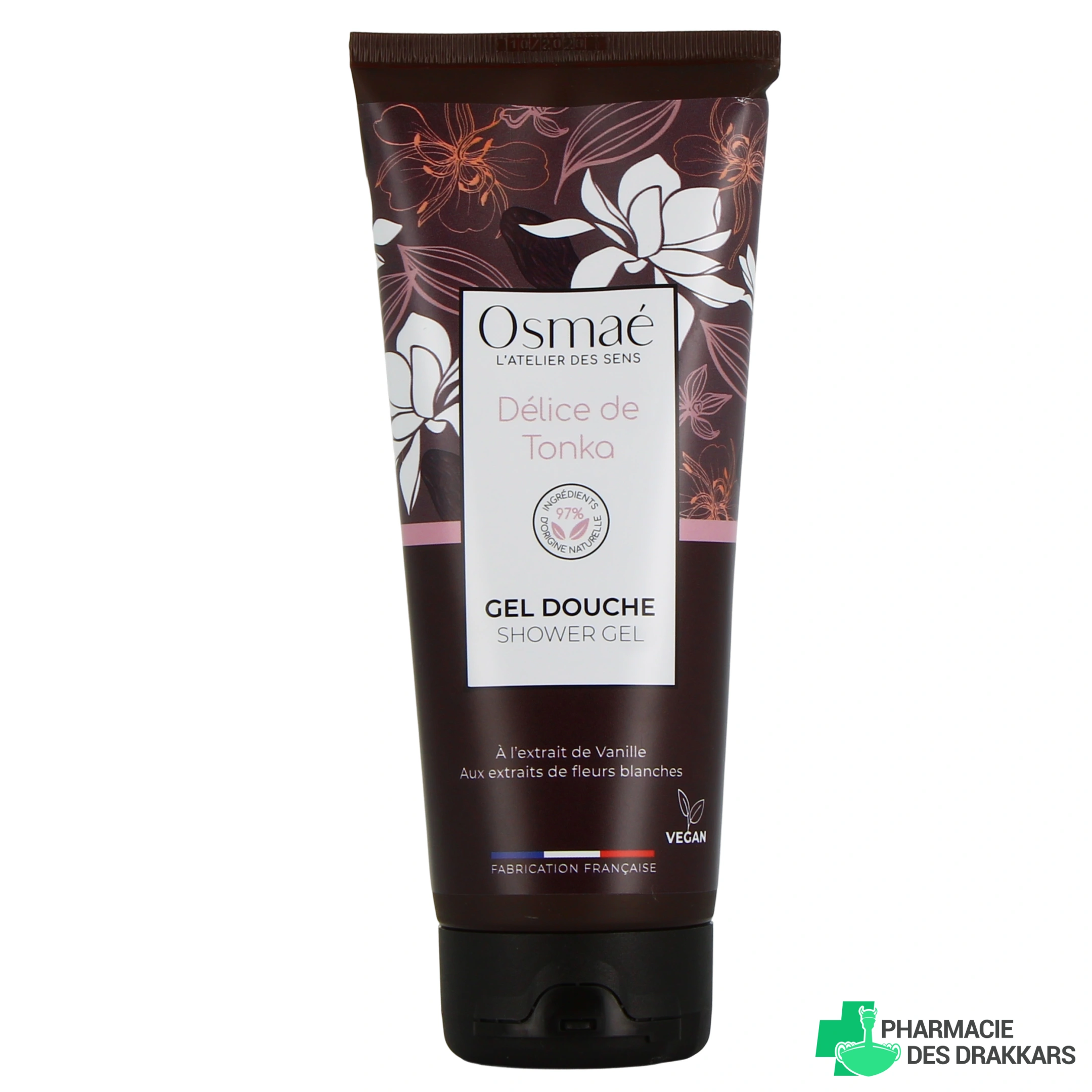 gel douche Délice de Tonka en tube de 200 ml et en flacon-pompe 1 litre ;