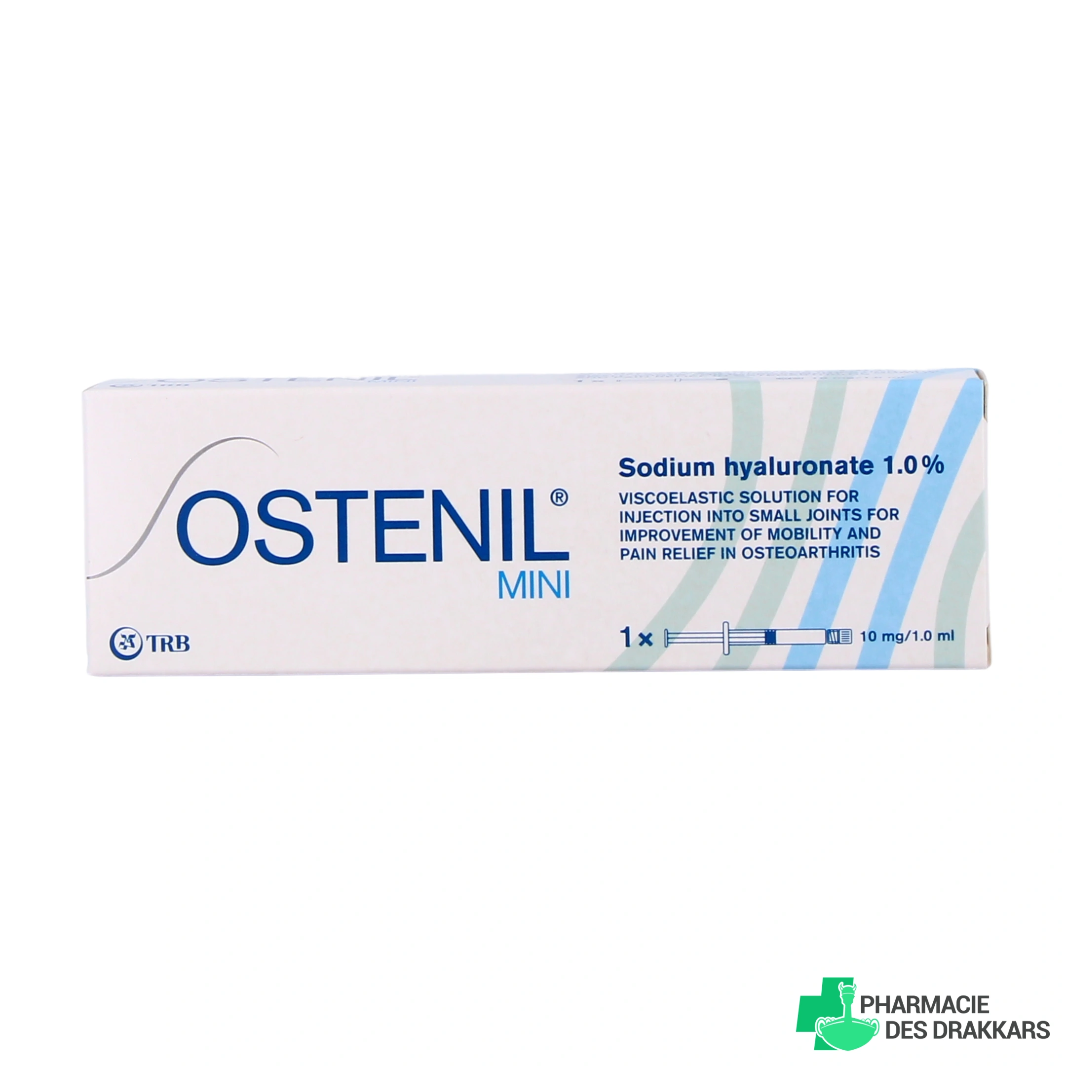 - Ostenil Mini, 1 seringue de 1 ml contenant 10 mg de hyaluronate de sodium.