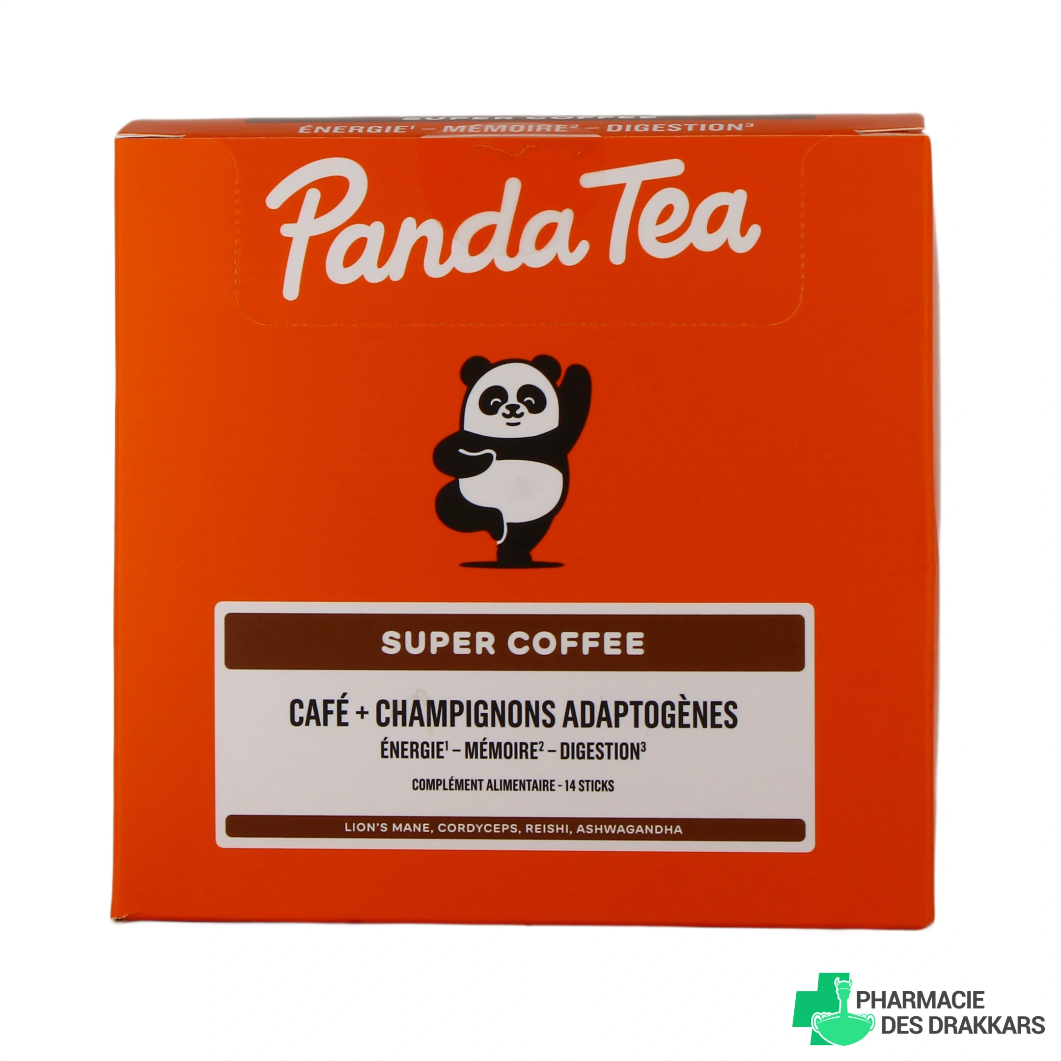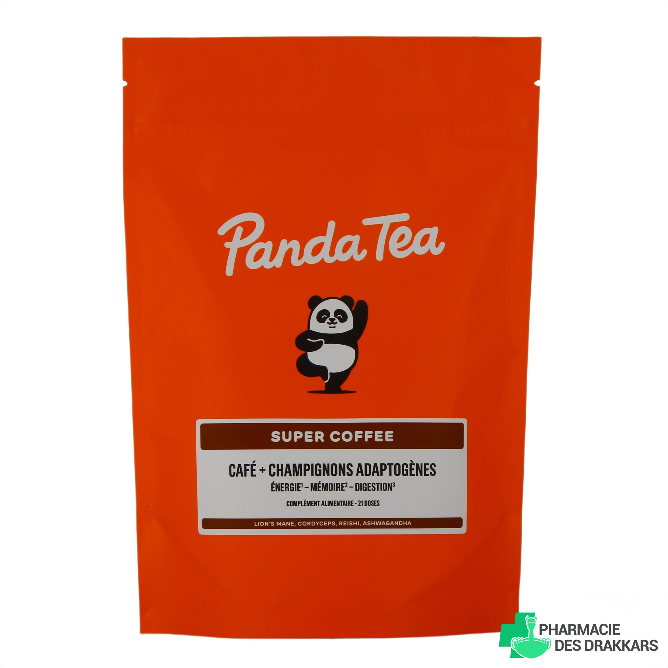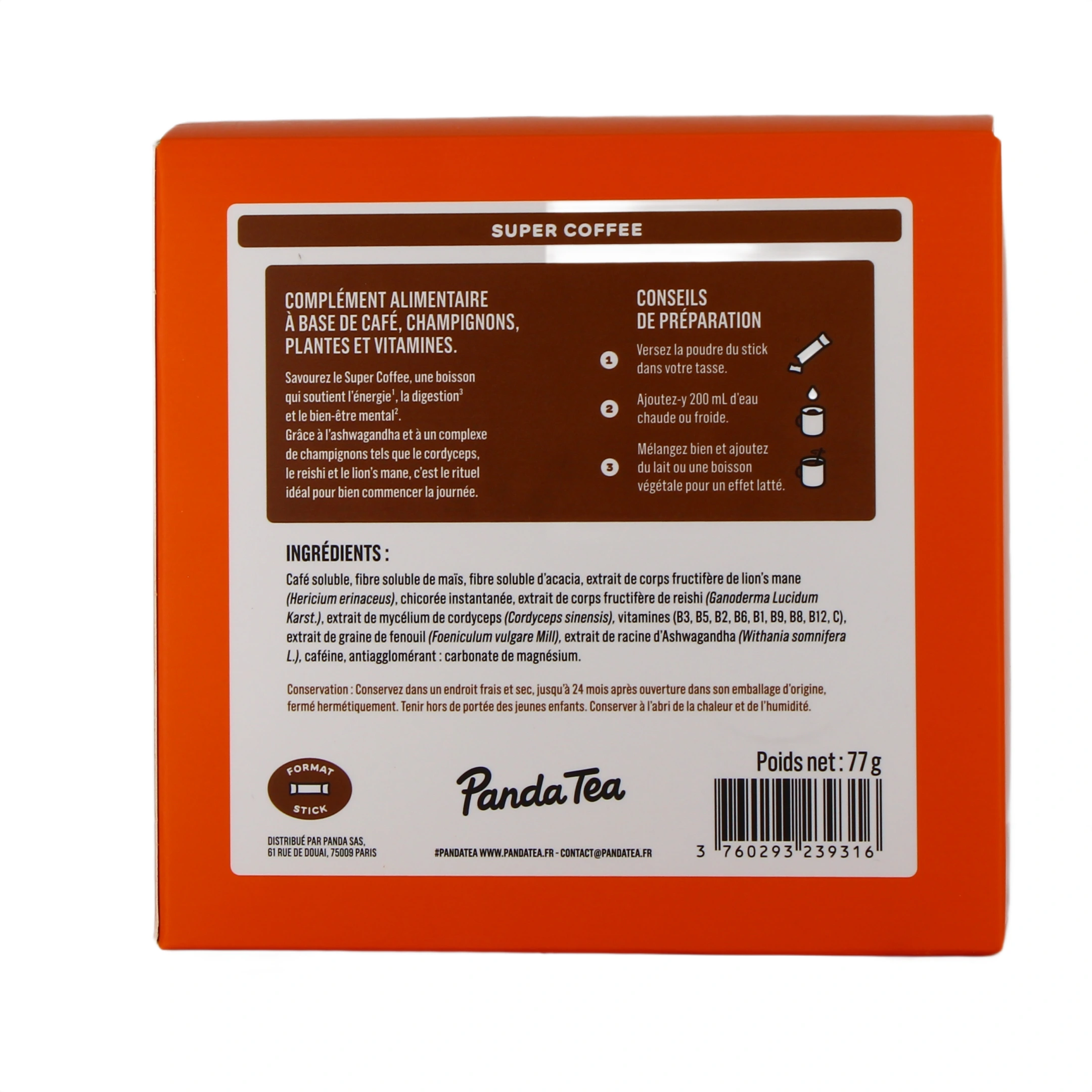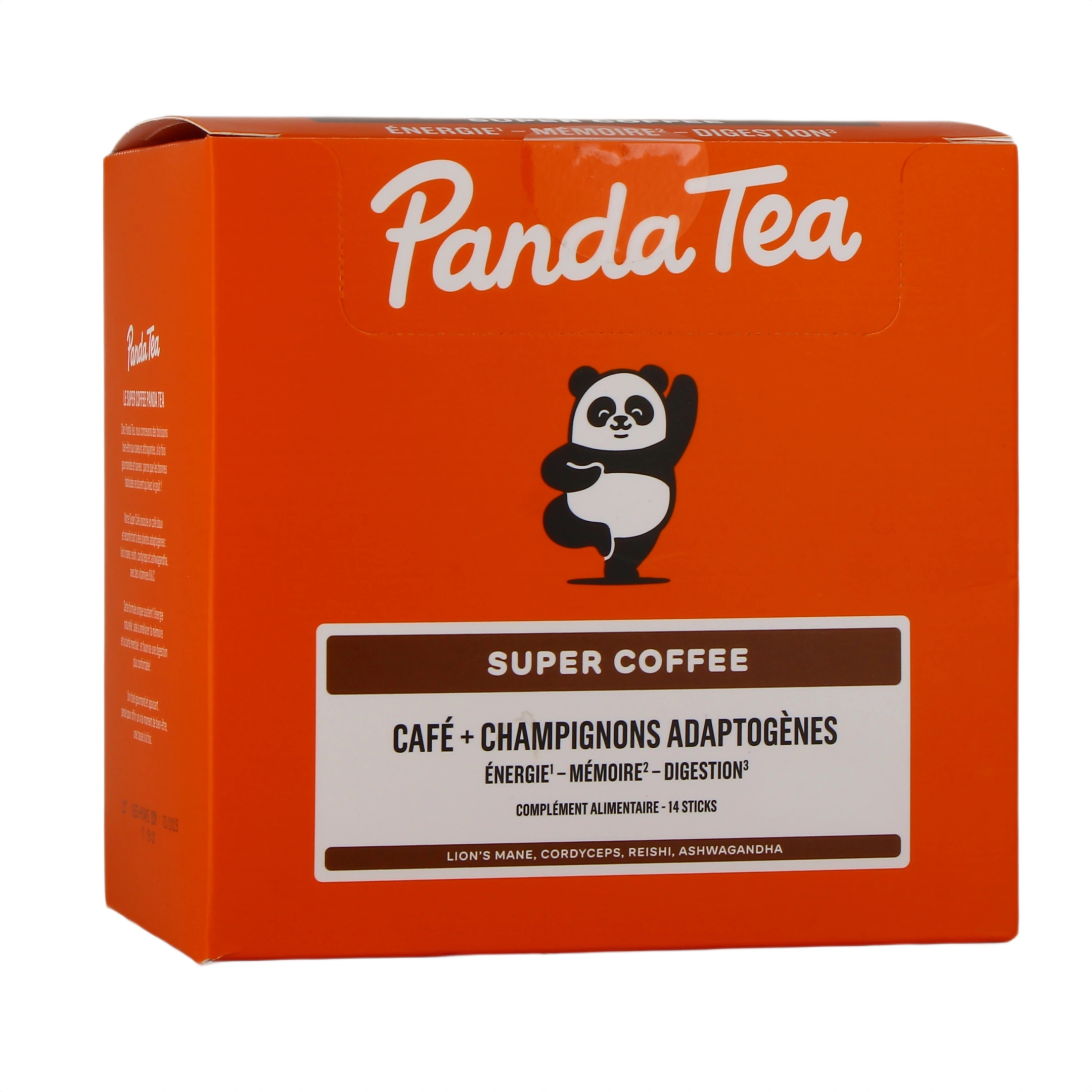 Panda Tea Super Coffee est un complément alimentaire sous forme de poudre, et formulé à base de café, de champignons (Reishi, Lion's Mane et Cordyceps), de plantes (Ashwagandha et Fenouil) et de vitamines (vitamines du groupe B et vitamine C). Son utilisation est recommandée chez l'adulte, mais elle est déconseillée chez l'enfant, la femme enceinte ou allaitante.