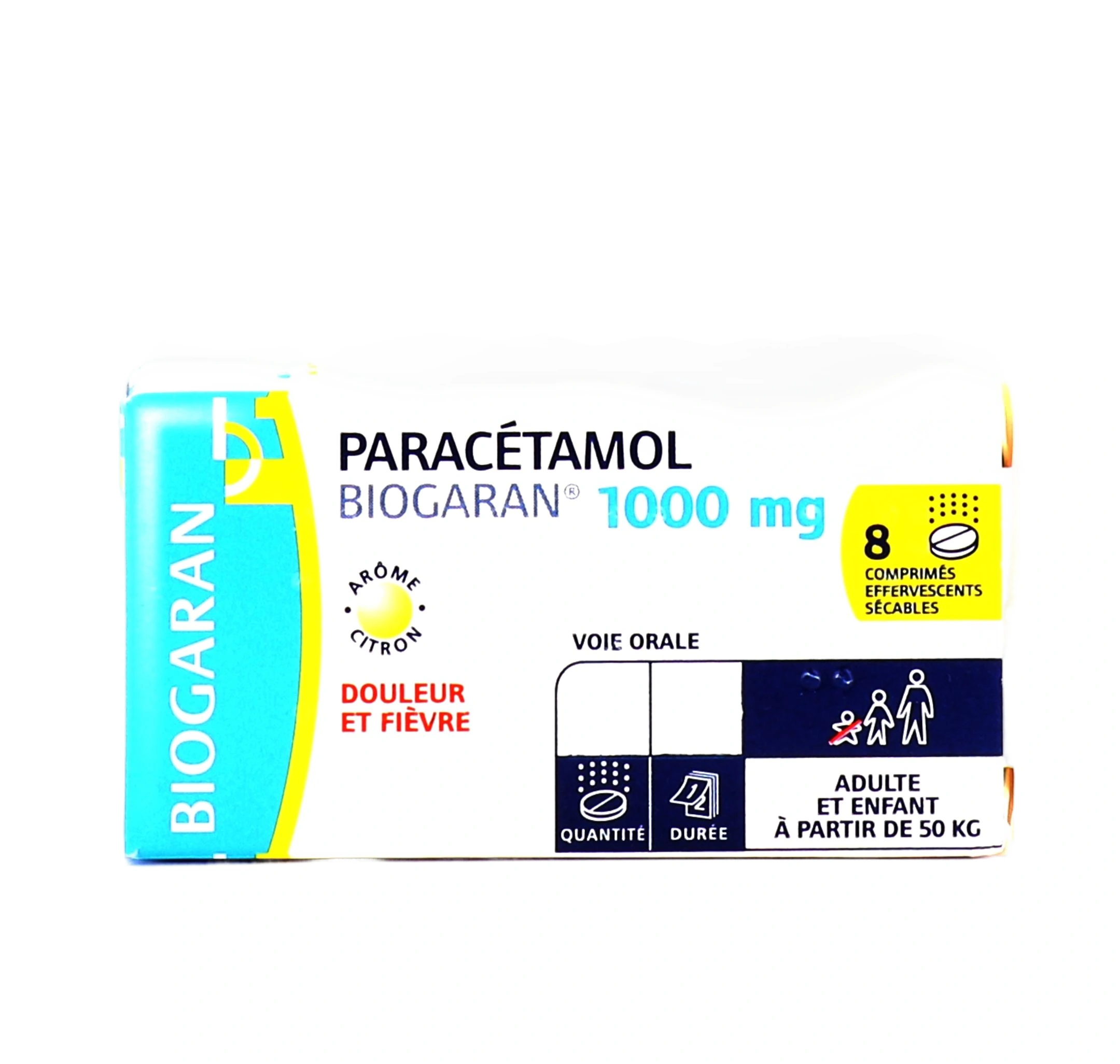 - Biogaran Paracétamol 1 g : 1 boîte de 8 comprimés sécables