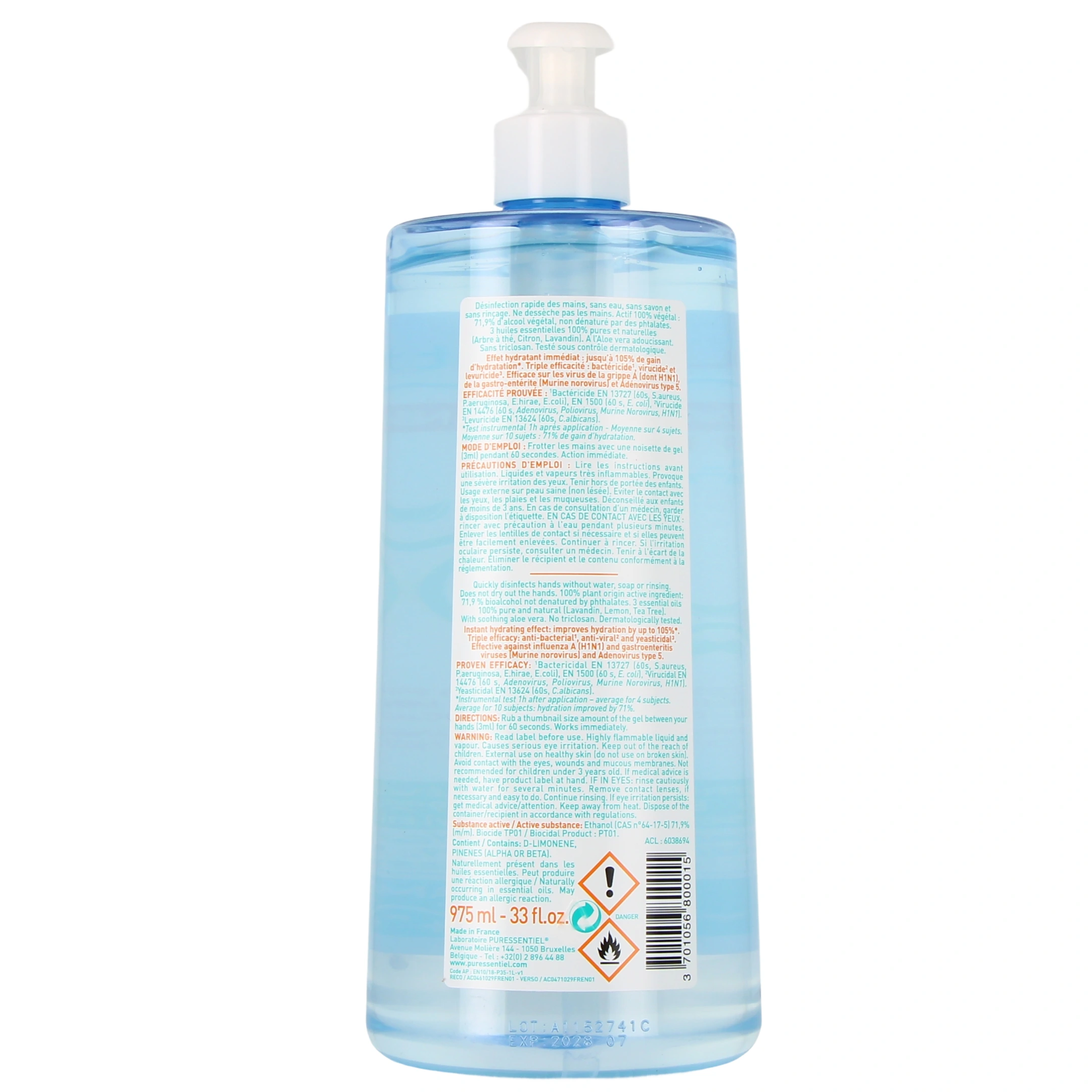 Le gel antibactérien assainissant Puressentiel permet de se désinfecter les mains facilement, rapidement et à n'importe quel moment de la journée. Il s'utilise seul, sans eau ni savon, et ne nécessite pas de rinçage. Ce gel hydro-alcoolique contient 3 huiles essentielles et de l'aloe vera, pour une action désinfectante qui ne dessèche pas les mains. Il contient 3 huiles essentielles : l'huile essentielle de Citron, l'huile essentielle de Lavandin grosso et l'huile essentielle de Tea Tree.