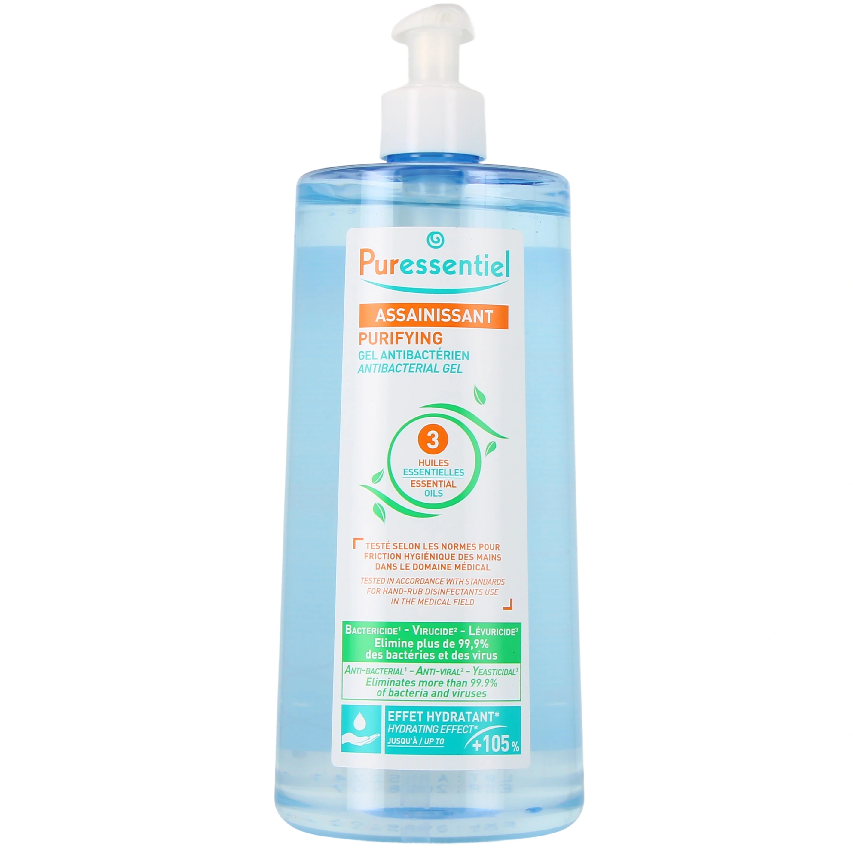 Le Gel Antibactérien Assainissant aux 3 huiles essentielles de Puressentiel est un gel hydro-alcoolique qui permet de se désinfecter les mains sans eau, sans savon et sans rinçage, rapidement.