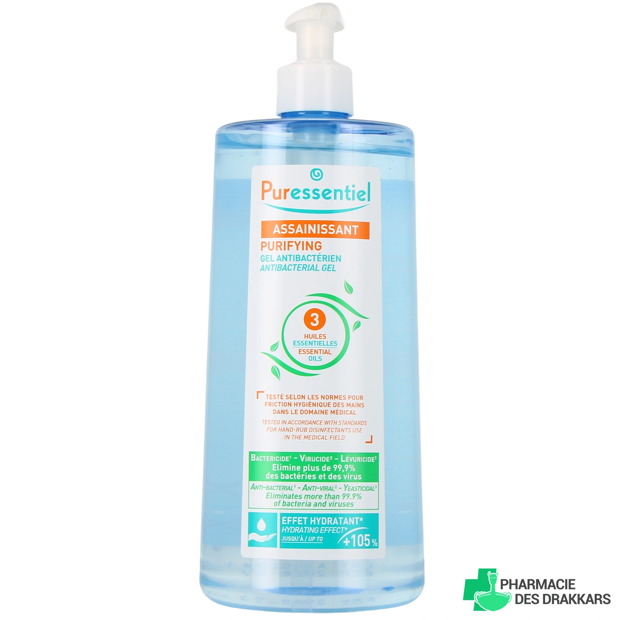 Anti-infectieux, anti-desséchant, ce gel hydro-alcoolique aux 3 huiles essentielles Puressentiel lave les mains sans eau, sans savon, sans rinçage. Ces 3 huiles essentielles du gel Antibactérien associées à l'Aloé Vera et l'alcool végétal lui confèrent des propriétés antiseptiques, antibactériennes, antifongiques, antivirales, un effet anti-desséchant et un effet fraîcheur.