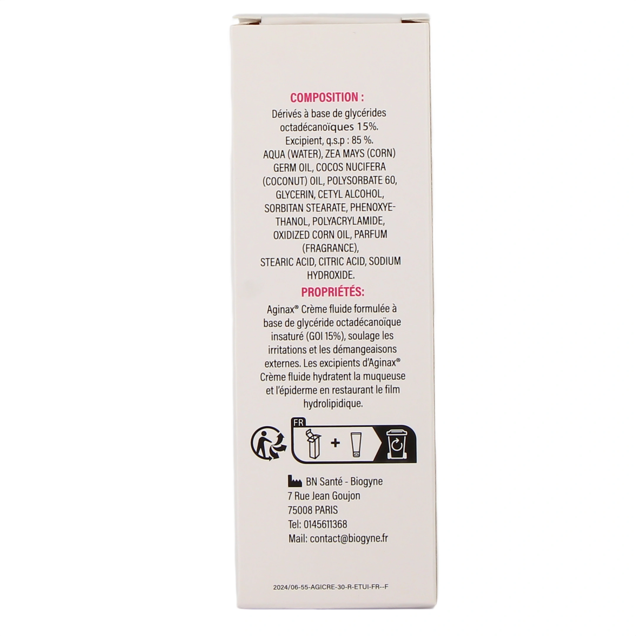 Pharmacie des Drakkars vous propose les présentations suivantes pour la crème fluide Aginax Biogyne : tube de 30 ml.